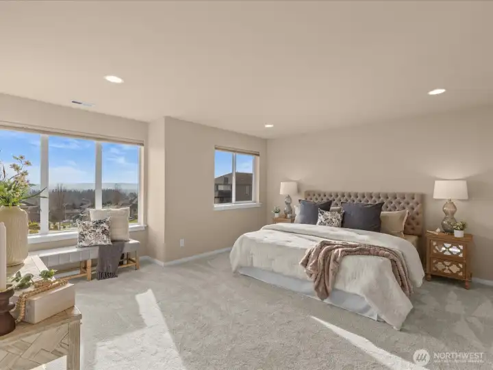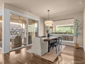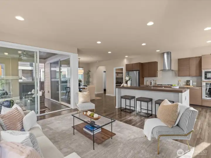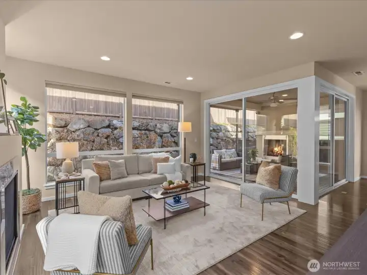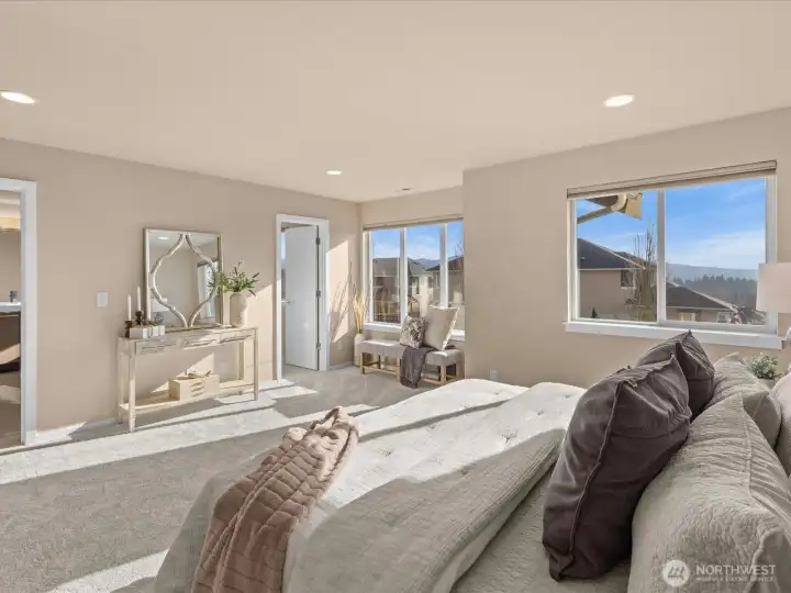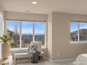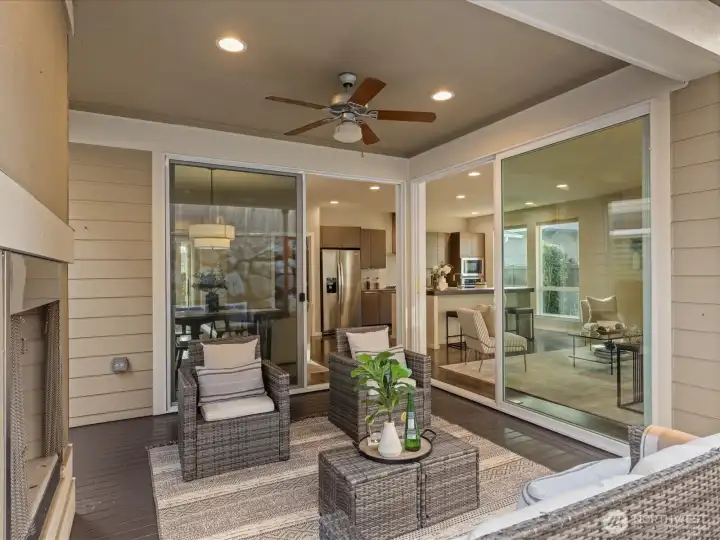 Step inside and experience effortless indoor–outdoor living with 10’x8’ sliding walls of glass that open to a custom covered outdoor living area complete with a cozy fireplace, perfect for relaxing or entertaining year-round. This home shines with fresh interior paint, and brand new carpet making it truly move in ready. Over $75,000 in luxury inclusions elevate the space, including a striking custom front door, a grand kitchen island, custom walk-in pantry, central air conditioning, tankless hot water, a spacious three car garage w/extra deep bay, and very private and fully fenced low maintenace back yard. Convenient upstairs laundry and bonus room make this home design perfect for today's active lifestyle. Wake up to views of Mount Rainier from the primary bedroom and enjoy thoughtful details designed for comfort, style, and everyday living. This home just feels right. Peace of mind with a Pre-Inspected home!