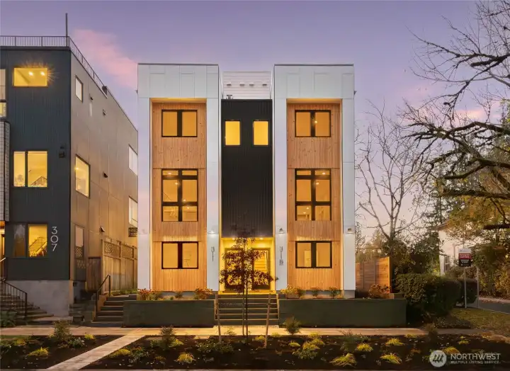 Crisp modern design meets everyday comfort. Four spacious brand-new homes from Pivotal Homes on one of Capitol Hill’s finest tree-lined streets. Step into a main-floor great room with wide-plank floors and a standout kitchen featuring a custom tile backsplash, quartz counters, modern cabinets, and stainless appliances. Powder room for guests. The primary suite offers a spacious ensuite bathroom and generous closet upstairs, with two lower-level bedrooms ideal for guests or work from home. Entertain guests and enjoy stunning views from your private roof deck. Assigned EV-ready parking space included. Walk Score 95 and Bike Score 96. Set on a quiet, peaceful street yet just moments from vibrant conveniences. Photos are of staged unit 311.