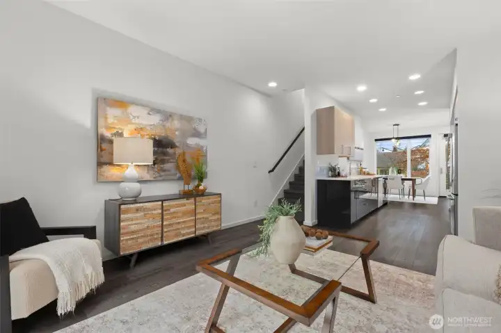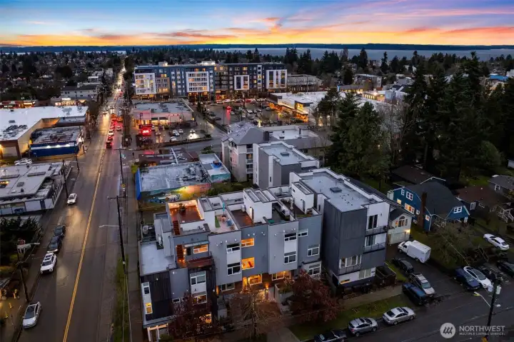 Set in the heart of Crown Hill, this contemporary townhome places you in the easy rhythm of one of Seattle’s most beloved neighborhoods. Head next door for a cinnamon roll at Wild Mountain Café, wander across to Baker Park, and stroll to coffee, schools, and conveniences. Inside, 3 thoughtfully designed levels unfold with rare separation of space, crowned by a rooftop deck where Mt. Rainier, the Seattle skyline, and surrounding mountains come into view—an unforgettable setting for entertaining and holiday fireworks. The entire 3rd level is devoted to a serene primary suite with an expansive closet and spa-inspired bath with soaking tub. New carpet, A/C, covered parking, and dedicated storage set the tone for an effortless urban lifestyle.