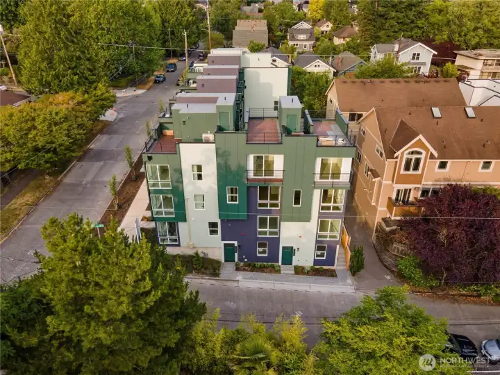 The final opportunity at Caspian is here—the only SW-facing corner end home, in the heart of Wallingford, offering incredible light, flexibility, & views of Lake Union. Walls of glass & a modern layout create an airy vibe throughout this 3-bedroom residence, perfect for hosting, working from home or effortless city living. The chef’s kitchen opens seamlessly to an inviting living space while the expansive rooftop deck steals the show—ideal for sunset dinners & morning coffee. A luxe primary suite is joined by 2 additional bedrooms for guests, office or a gym. EV-ready parking adds convenience. Steps to Gas Works Park, Fremont, the U-District & minutes to Google & Adobe—there's nothing else like it in Wallingford! +2.99% rate *(terms apply)!