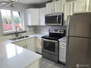 Welcome to this small community close to all amenities, including JB Lewis-McChord, Costco, an award winning bike park, and more. Enjoy the primary bedroom with private bathroom on the main floor & 2 additional bedrooms & full bath upstairs. Vaulted ceiling make this home feel bigger plus the open concept main floor leads out to fenced deck for entertaining to include a privacy fence of trees. Feel the joy of cooking and serving people in your newer elegant white on white kitchen & stainless steel appliance package. Say good bye to a crappy apartment & public laundry facilities with a private washer and dryer in home & feel the satisfaction of home ownership! 1 car attached garage plus driveway parking. Great 3 bedroom at this great price!