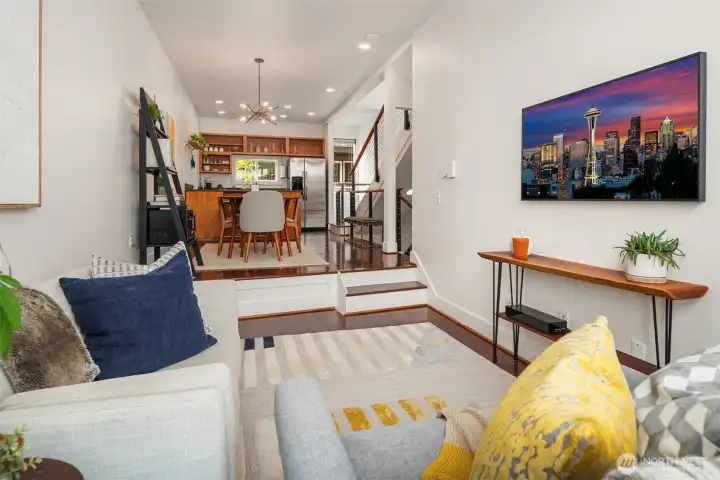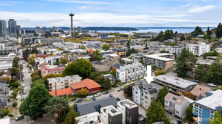 Modern 2bd/2ba Queen Anne townhome with NO HOA, perfectly positioned just steps from the Space Needle, Climate Pledge Arena, and Seattle’s best restaurants and culture. Enjoy a bright, open layout with cherry hardwood floors, slab quartz countertops, stainless steel appliances, and air conditioning throughout. The luxurious primary suite features a private view deck, spa-style bath, and custom walk-in closet. A flexible lower-level bedroom and den offer the perfect setup for guests, office, or Airbnb income. Complete with an attached garage and generous storage ideal for a home gym or gear room. Own in one of Seattle’s most iconic neighborhoods — where vibrant city living meets everyday convenience!