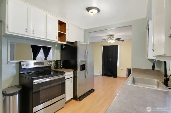 This charming house is ready for you to put the finishing touches on to make your own. The property sits on a spacious lot of approximately 0.15 acres with mature landscaping and a huge, fenced yard perfect for enjoying the outdoors.The exterior has been freshly painted, adding to the home's curb appeal and longevity. The interior features hard surface floors, neutral tones, and an efficient layout that creates a feeling of openness. The kitchen is equipped with and includes ALL appliances! complemented by the home's overall spacious and bright atmosphere. Exterior features include a covered patio, a toolshed, and ample outdoor space for activities and plentiful parking. Conveniently located, this property offers easy freeway access and is