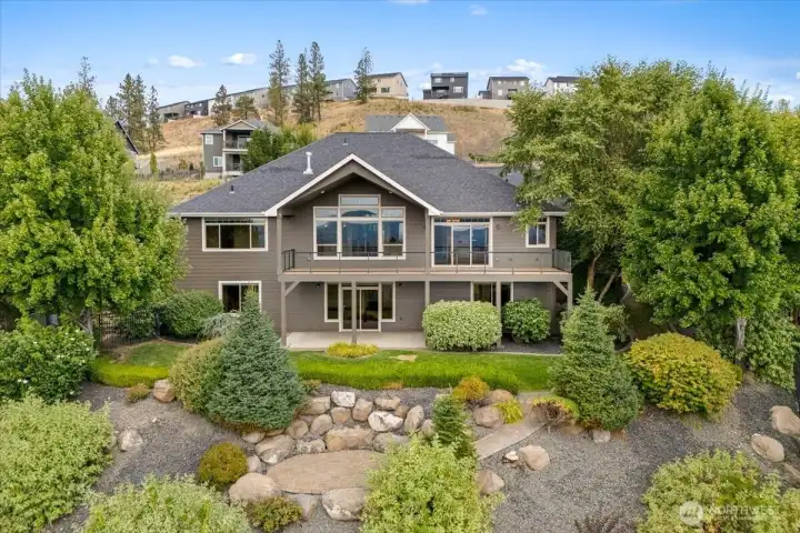 Perched on the desirable 5 Mile Bluff where luxury meets comfort. The chef’s kitchen is ideal for entertaining with high-end granite counters, custom cherry cabinetry, a massive island, top-tier stainless appliances, gas grill-top stove, & a brand-new French door fridge. The main floor primary ensuite is a retreat with breathtaking views, spa-like bath & a walk-in closet any fashionista will love. Floor-to-ceiling windows & soaring ceilings showcase 180 degree panoramas & unforgettable sunsets. Outdoor living includes a welcoming covered front porch, composite deck perfect for sunset dining, and shaded back patio. Updates in 2025 include refinished hardwoods, new LVP flooring, landscaping and fresh professional exterior paint.