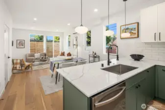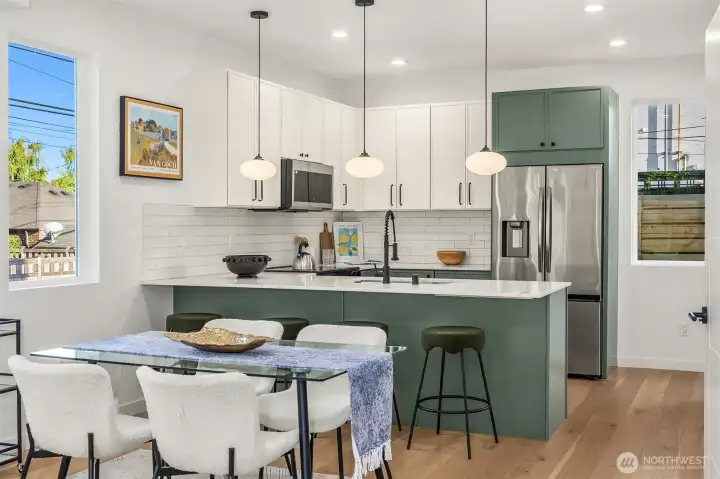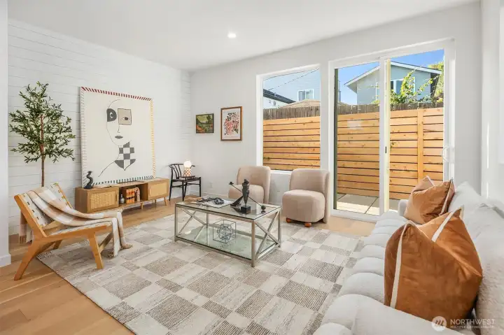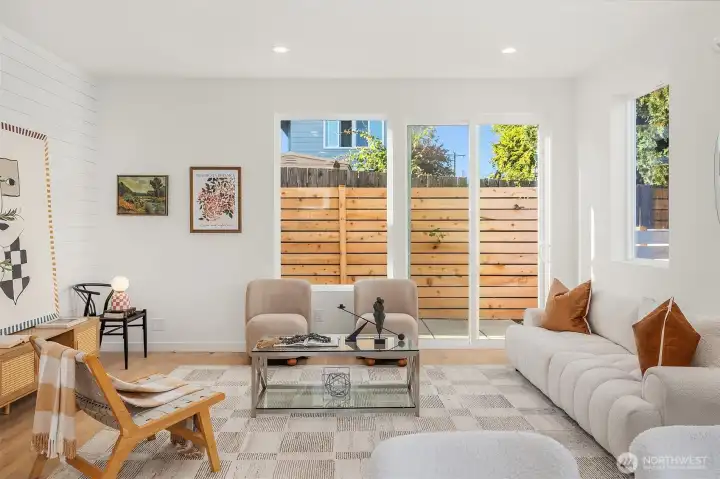 Welcome to your contemporary standalone new construction home, thoughtfully crafted by Greenway Homes. Modern design meets everyday comfort in the open-concept main floor, where custom cabinetry and oversized windows create a bright, inviting space. Sliding doors lead to your private patio—perfect for coffee, cocktails, or catching some sun. Upstairs, you'll find a spacious bed and bath, plus a primary suite w/ ample closet space and vaulted ceilings. Mini-Split AC, fully fenced yard + parking space w/ EV charging. Just moments from shops, cafes, and Golden Gardens just minutes away, so beach walks are always within reach. This is one you don't want to miss!