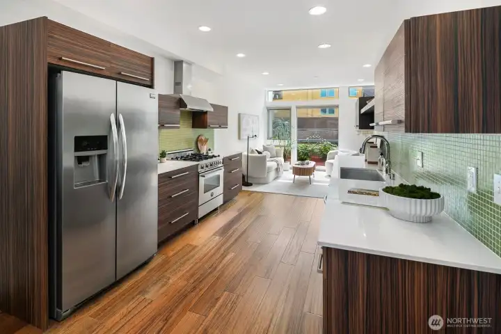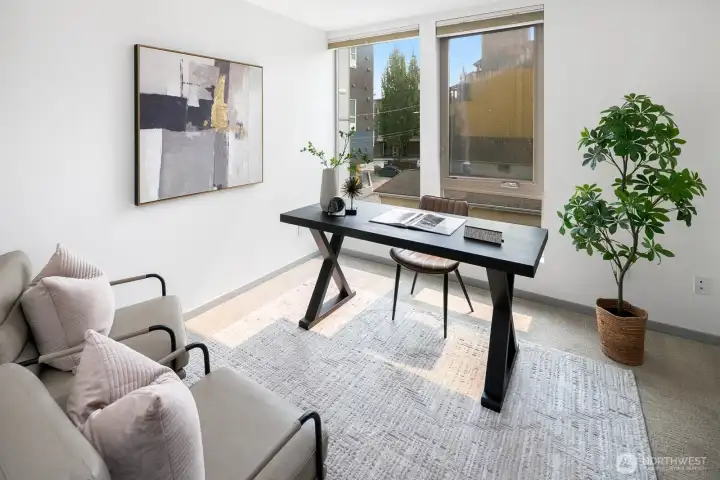 Don’t miss this expansive townhome with a thoughtful floorplan in an excellent Capitol Hill location. The entry level features a rare heated 2-car tandem garage/flex space perfect for a gym, shop or home business in addition to parking. The spacious entertainment sized main floor offers living and dining centered around an open kitchen with contemporary cabinetry, quartz counters and stainless appliances. All bedrooms are upstairs - 2 generous sized guest beds and full bath occupy the middle living level; the top floor is dedicated to the primary suite, with spa-like bath, plus home office and large covered balcony. Enjoy the 93 Walk Score – shopping, dining, and more at your doorstep. Just move in & enjoy the Capitol Hill lifestyle!