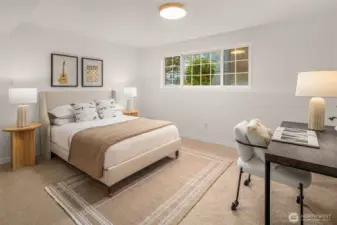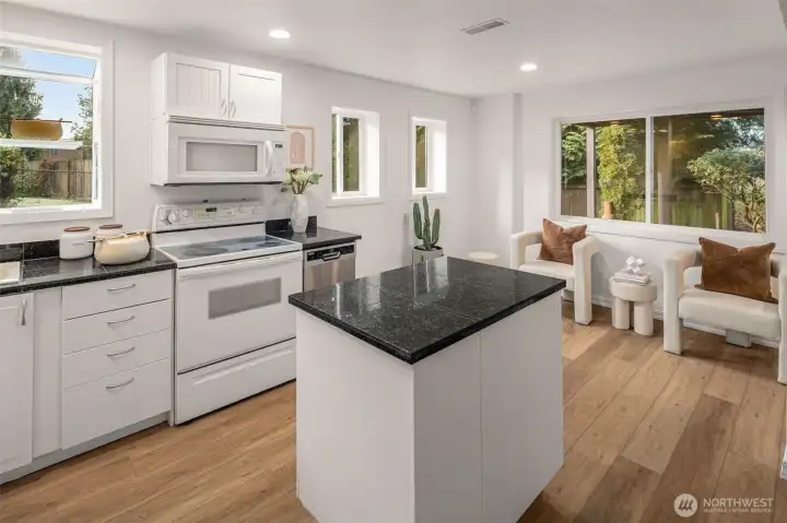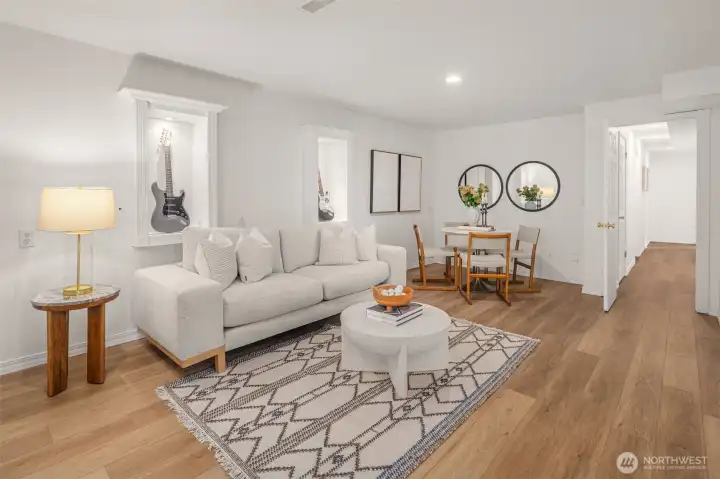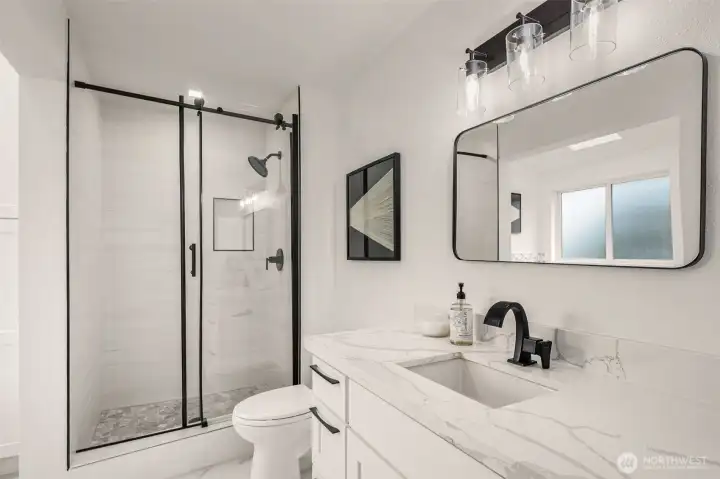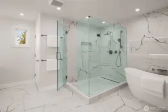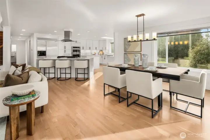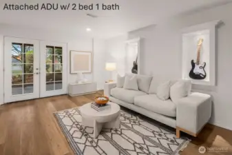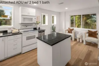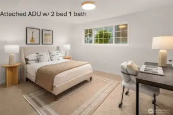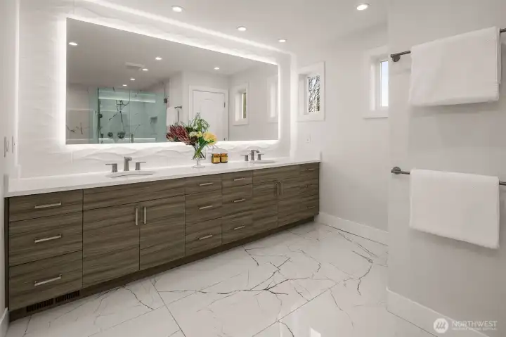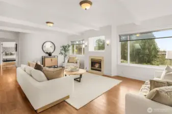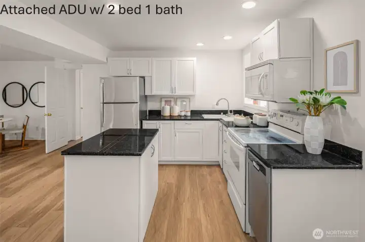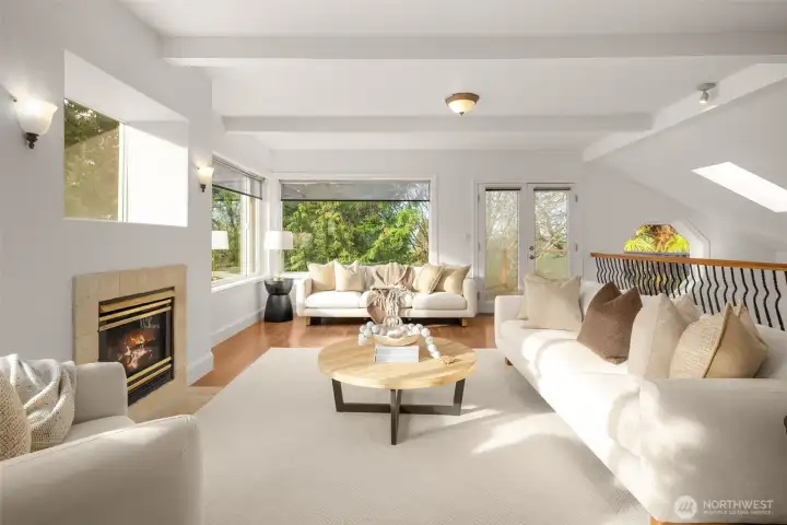 Nestled on a private drive in Kirkland’s coveted East of Market neighborhood, this exceptional home sits on a 12,500 sqft lot offering rare privacy w/ over 200k spent on remodel! A grand foyer welcomes you w/ vaulted ceilings, skylights & cherry hardwood floors. The primary suite includes 5-piece bath, fireplace, walk-in closet, lake views & a Juliette balcony. Enjoy Seattle & Lake views from upper family room. Gourmet kitchen features quartz counter & stainless appliances. 3 oversized bedrooms on the main level include a 2nd master suite. Lower level MIL/ADU offers a separate private-entry w/ 2 bed 1 bath, LVP floors, patio & designated parking. Minutes to parks, beaches & DT Kirkland. Award-winning Lake Washington SD Schools!