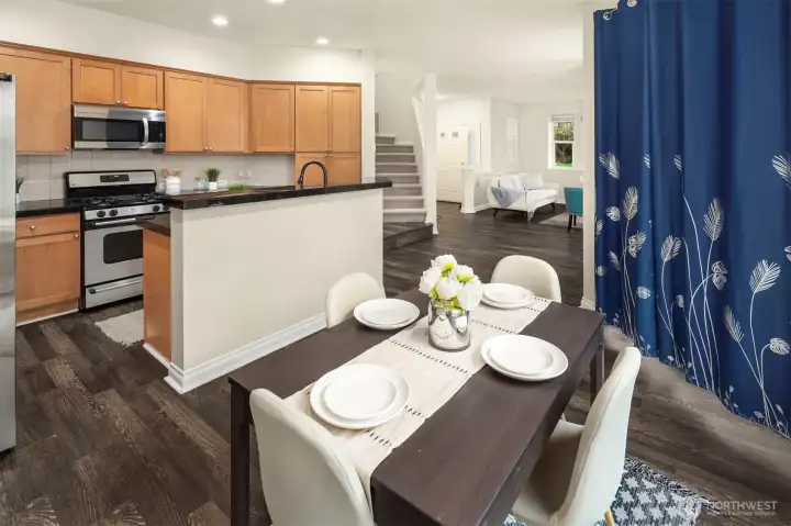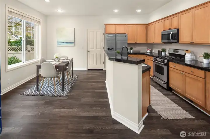 Situated in the heart of Redmond, this home impresses with a wide footprint and high ceilings that create a bright, open feel. The efficient 3 bed/2.5 bath floorplan features an oversized living and dining area that lives like a single-family home. Gleaming hardwoods on the main level are complemented by new interior paint and new carpet. The kitchen offers granite countertops, stainless steel appliances, a breakfast bar, and great flow for everyday living and entertaining. A convenient office nook supports work-from-home flexibility. Enjoy a side-by-side two-car garage, private yard, central AC, no rental cap, nearby parks and trails. Lake WA schools. Easy access to 520, Microsoft, Costco, Whole Foods and downtown Redmond. Pre-inspected.