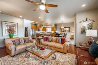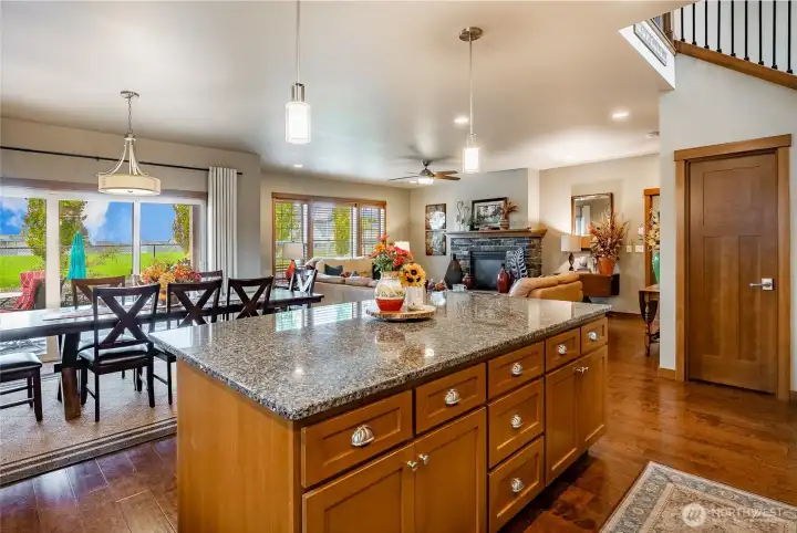 Stunning NW Designed home with ideal floor plan & quality craftsmanship. Beautiful entry with open staircase, wood flooring throughout main level and Air-conditioning. Gourmet kitchen with SS appliances, granite counters, large island, walk-in pantry, under cabinet lighting and open to dining/living with gas fireplace. Main floor features primary bedroom with a 5-piece ensuite and huge walk-in closet, an office or 4th bed and laundry room with loads of storage. Upstairs you'll find 2 Big BRs, full bath, extra storage and an expansive family room providing the perfect space for entertaining, relaxing or creating a home theater. Fully fenced backyard meticulously maintained w/sprinkler system, covered back patio, firepit & garden shed.