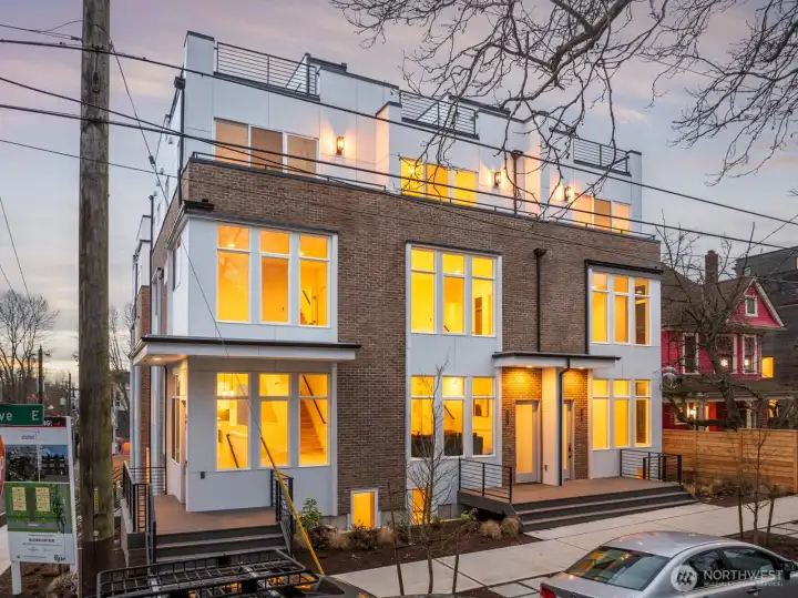 LAST HOME AT RUE! Sited on a sunny corner lot, this thoughtfully designed townhome, offers a generous layout, ATTACHED GARAGE, and sprawling rooftop decks with city views. Built by esteemed builder, Shelter Homes, this 3 bedroom plus den home has ample natural light, contemporary finishes, and attention to detail that is sure to impress. Located two blocks from vibrant shops, restaurants, and nightlife along Broadway Ave and just ½ mile from the Capitol Hill LINK light-rail station, don’t miss this opportunity to own in this coveted community!