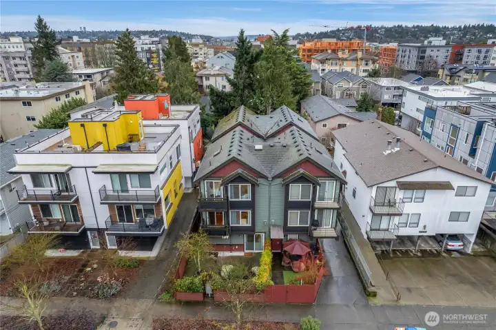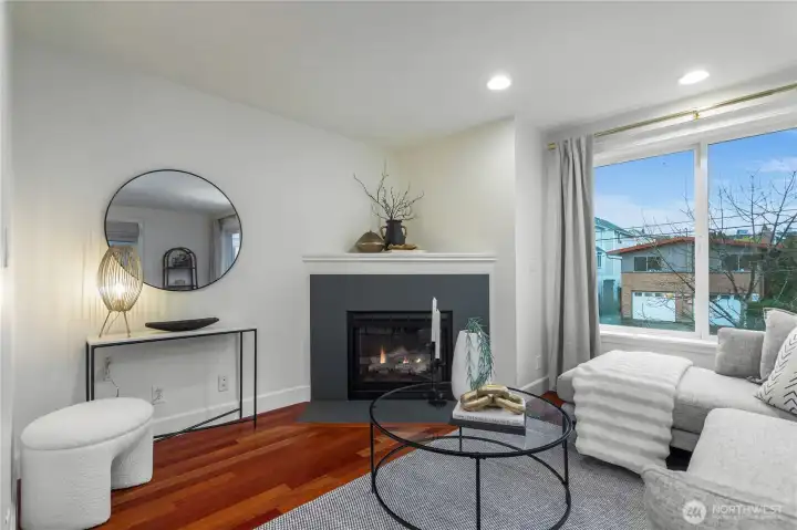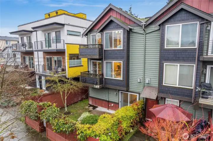 This delightful 3 bed, 3.25 bath townhouse has it all. The home includes a gas fireplace, refreshed kitchen with new quartz countertops, fridge, two balconies, a fully-fenced yard with patio space, double-paned windows and rare warm cherry hardwood floors throughout the main floor. Light-filled from vaulted ceilings and skylights, you’ll revel in the home’s open & inviting feel. Don’t miss the attached garage that could double as a home gym - although w/ a walk score of 95 - you are close on foot to Ballard’s best offerings: shops, restaurants, parks and nightlife. WFH here with ease! The lower bedroom with attached green space is the perfect zone for privacy and focus. Pre-inspected. No HOA or rental cap make this a GREAT investment!