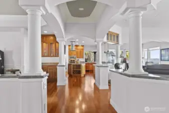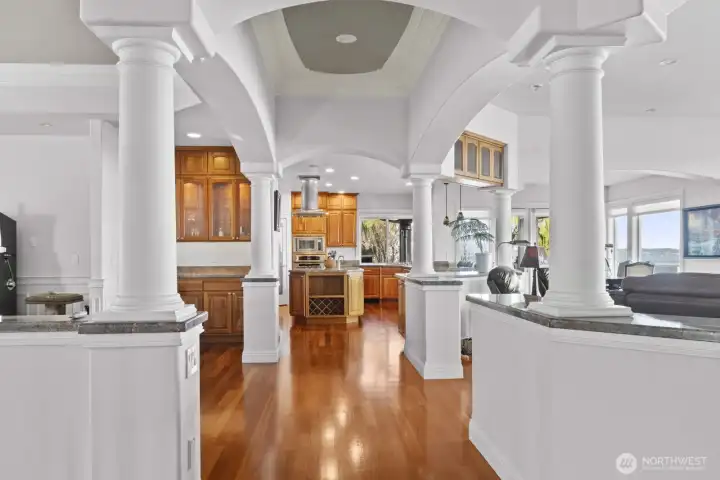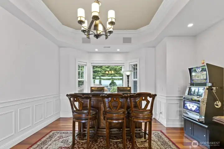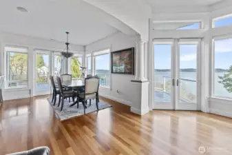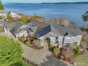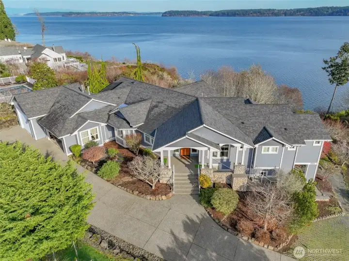Commanding a premier position on Olympia's high-bank WATERFRONT (100'), this custom N.W. Estate captures un-obstructed, panoramic views of Puget Sound, with Mt. Rainier anchoring the S.E. horizon and the Olympic Mountains to the West. Set on 1.28 acres, this 5,375 sq ft home has been meticulously maintained and thoughtfully designed to showcase it's spectacular setting. Expansive walls of windows frame the ever-changing water views, filling the home with natural light, while Brazilian cherry floors, custom cherry cabinetry, slab granite countertops, designer tile, heated floors and hard-wired sound reflect the home’s quality craftsmanship. The primary bath offers radiant heated floors and towel warmers creating a spa-like retreat. Power window shades in various areas of home. Recent updates include a new roof (2023) and new Trex deck (2024), ensuring peace of mind and effortless indoor-outdoor living. The lower level offers a fully self-contained 2nd LIVING SPACE with its own kitchen, bedrooms, utility room, and separate hot water system. A dedicated theatre room can easily be converted back to a spacious living area, offering flexibility for multi-generational living, extended guests, or additional living space. ADA accessible. All appliances in both the upper and lower living areas are included. Private beach community offering direct waterfront access. A rare opportunity to own a well-loved, exceptional waterfront home with views that truly impress.