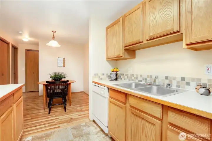 A commuter’s dream location—only 15 minutes from downtown Seattle and 8 minutes from SeaTac Airport. This spacious one-bedroom condo is bright, very quiet, and looks out onto the greenery. Oak laminate floors, custom window shades, an efficient updated boiler, and a brand-new dishwasher add modern comfort. The generous bedroom fits a king-sized bed and features a huge walk-in closet. In-unit washer and dryer, plus a private balcony with storage. Low HOA dues (no special assessments, no rental cap, pets Ok) include water, sewer, garbage, and insurance in a well-maintained community. Assigned parking with plenty of guest spaces. A block away from Boulevard Park Library, near parks and golf courses, in an up-and-coming neighborhood.