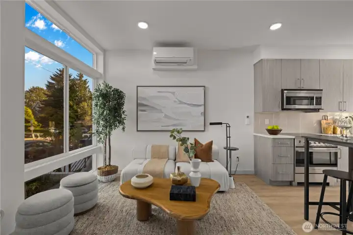 SPECIAL 2.25%* RATE AVAILABLE! Modern living by MRN Homes, located in the heart of Fremont—mins from major tech hubs, the Burke-Gilman Trail, Fremont Canal, Gas Works Park & Seattle’s most dynamic eateries & shops. Light-filled interiors showcase expansive windows, open-concept living & designer finishes throughout. Boasting a chef's kitchen w/premium Fisher & Paykel appliances, quartz countertops & PNW crafted cabinetry. Serene top-floor primary suite w/spa-like bath, 2nd bedroom w/full bath on upper level also—ideal for guests or WHF office. Efficient mini-split heating & A/C. Rare full-size rooftop deck captures sweeping Seattle views. Exceptional opportunity in a high-demand Fremont location w/enduring value. No HOA Dues! *Terms apply.
