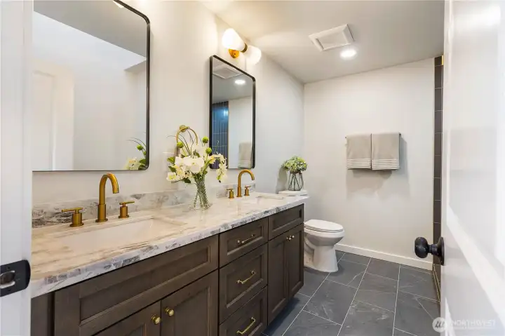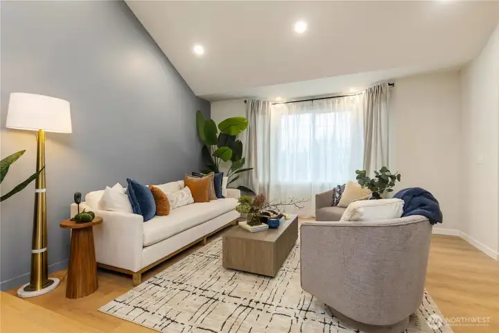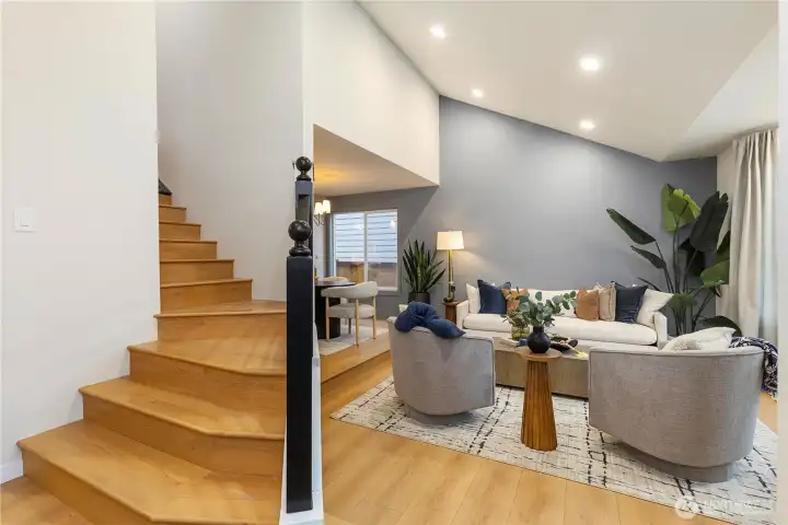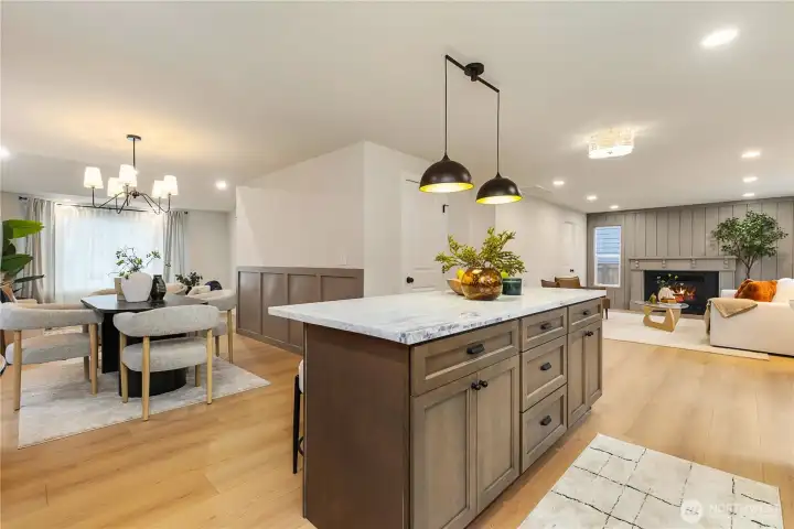 Fully updated & permitted home on a quiet street in Renton Highlands. Soaring ceilings welcome you into sunlit formal living rm w adjoining dining, flowing into kitchen w new cabinetry, stone countertops, SS appliances, tiled backsplash & ample storage w walk-in pantry. Family rm feats new FP design & easy access to expansive backyard. Laundry & charming powder BA adds convenience. Upstairs, 3 beds & remodeled full BA. Primary retreat offers ¾ ensuite w all-new tile, double vanity & large shower w sleek finishes & walk-in closet. Outside, enjoy the level, freshly sodded & manicured lawn, huge patio & shed. New roof, furnace, HWH, floors, doors, trim & more. Easy access to parks, trails, shopping at The Landing & convenient commuter routes.