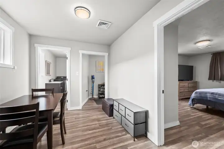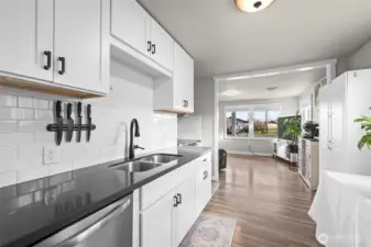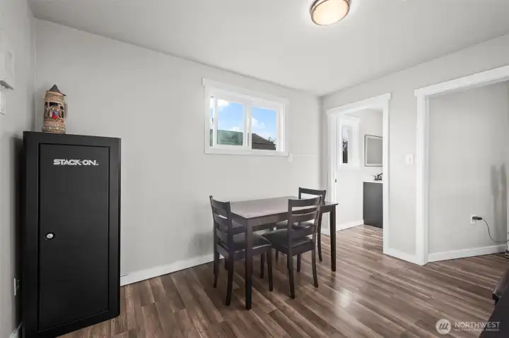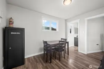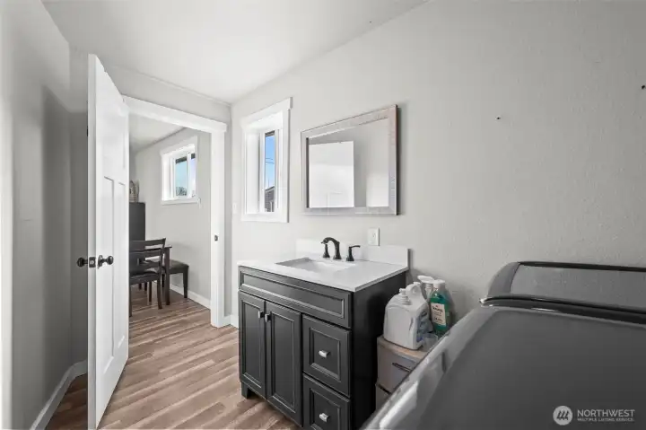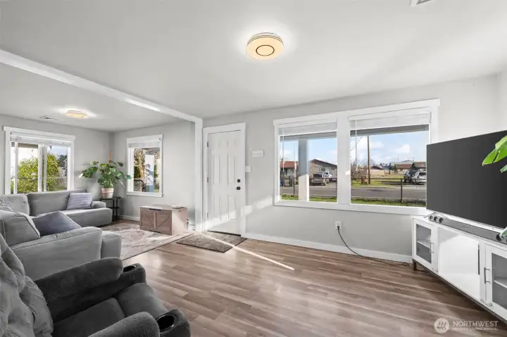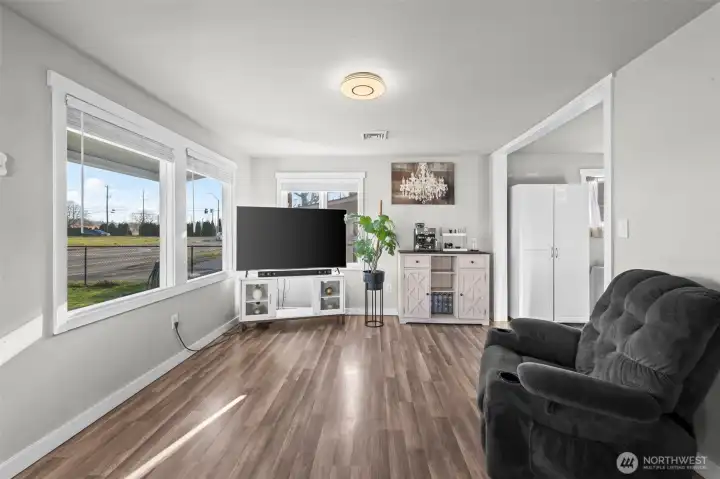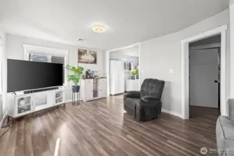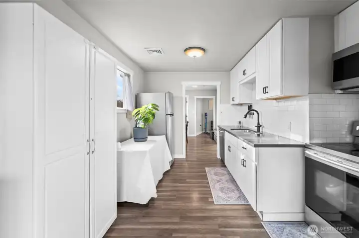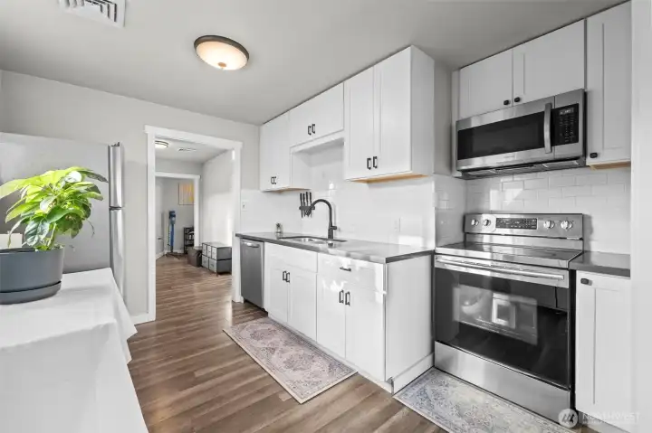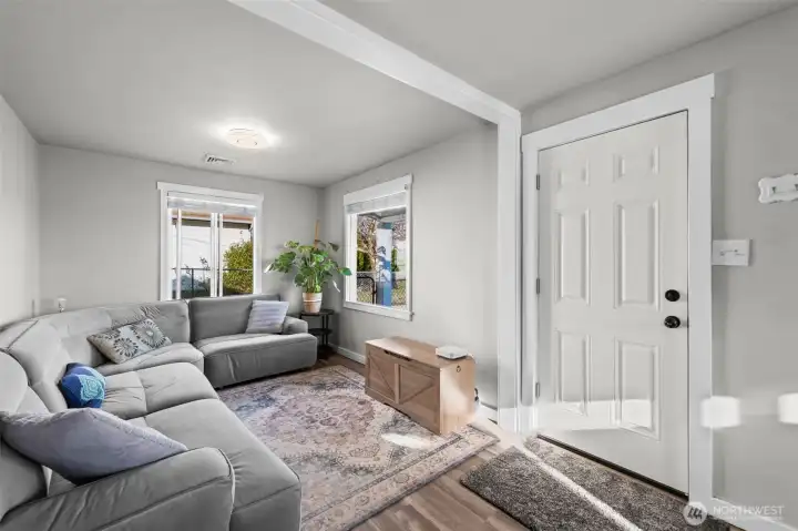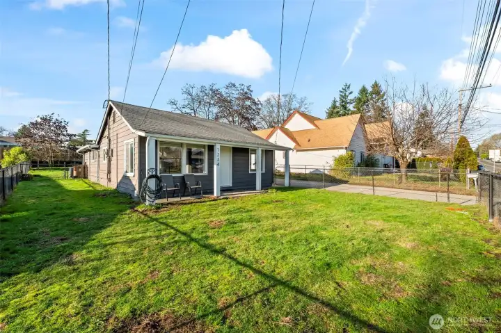 Charming bungalow with thoughtful updates throughout on a large lot. This home offers 2 bedrooms and 1.75 baths with a functional and inviting layout. White and bright kitchen features shaker cabinets, quartz countertops, subway tile backsplash, stainless steel appliances, and a new microwave. Laminate hardwood flooring flows throughout. Updated vinyl windows, newer heat pump and hot water heater. New front door, back door, and back storm door add comfort and efficiency. Enjoy a fully fenced yard ideal for pets, gardening, or entertaining, plus a detached garage for parking or storage. Take in Mt Rainier views from your living room and enjoy a central Tacoma location with quick freeway access, shopping, dining, and amenities nearby. Plus enjoy the Picha Farms Berry stand across the street each summer! Ideal for first time homebuyers or downsizers seeking style, comfort, and convenience.