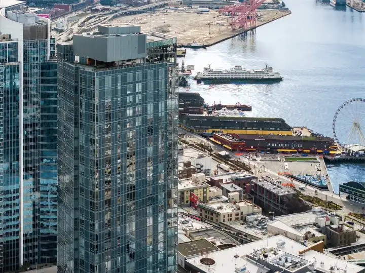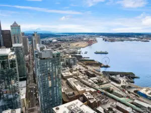 Experience elevated urban living at The Emerald, Seattle’s premier high-rise just steps from Pike Place Market and the revitalized waterfront. This stunning one-bedroom corner unit showcases floor-to-ceiling windows with views of Elliott Bay, the Olympic Mountains, and the sparkling city skyline. Interior highlights include Bosch appliances, custom cabinetry, wide-plank oak floors, quartz countertops, and Latch keyless entry. Enjoy world-class amenities—24-hour concierge, fitness center, yoga studio, pet run and spa, guest suite, and a breathtaking rooftop lounge with panoramic views. With a 99 Walk Score, explore Seattle’s top dining, shopping, and entertainment right outside your door. Optional nearby parking available.