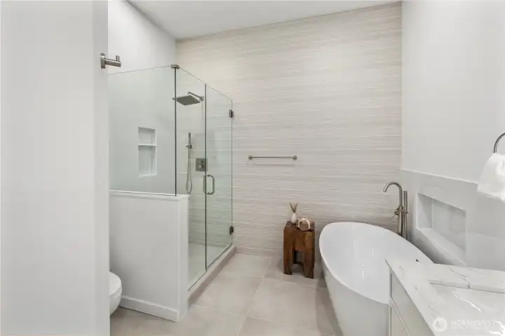 Welcome to this perfect 3 bed 2.5 bath, and 2,142sqft desired Edmonds home! This 2-story residence has been thoughtfully designed and updated with custom finishes, including a dreamy kitchen boasting new cabinetry, ample pantry space, stunning wall of backsplash, and all new appliances. The main level features soaring ceilings, private views and a primary suite with oversized bathroom holding dual vanities and stand alone tub for the ultimate lavish comfort and serenity. A key feature of this home is its unique dual-living layout with 2 kitchens and 2 separate entries, allowing you to enjoy the full space or rent out downstairs. Complete with a 2-car garage, located on a corner lot, this stunning home is ready for you, come tour!
