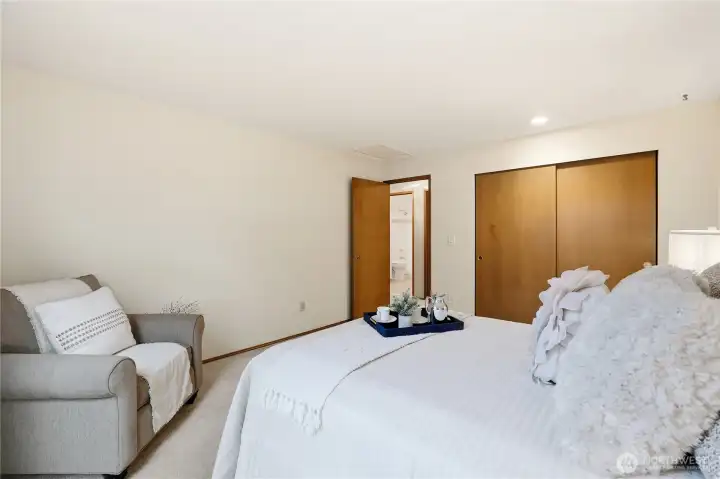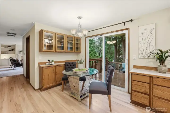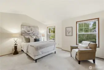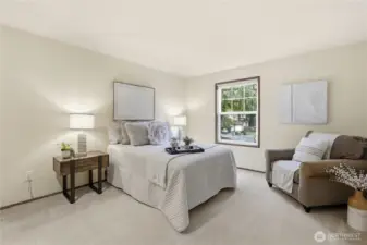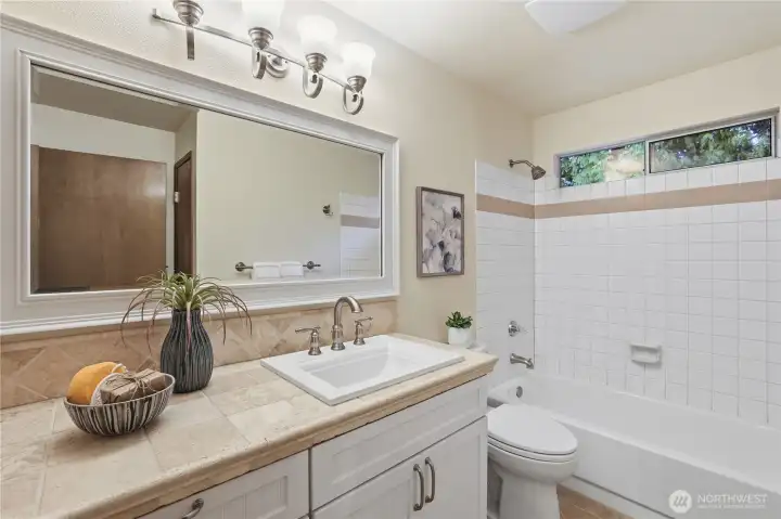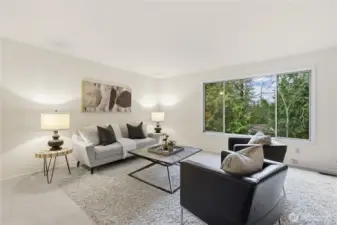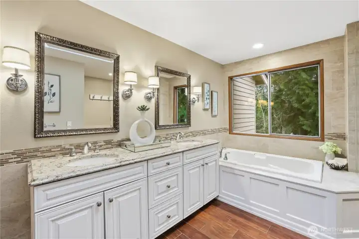 Beautifully refreshed home backing to a serene greenbelt in a desirable Sammamish location. The main level offers a welcoming living room, dining room, kitchen overlooking the garden, and a spacious family room ideal for everyday living and entertaining. Upstairs, the primary suite features a fully updated bath with heated tile floors, new shower, tub, and vanity. Three additional bedrooms include an oversized room perfect for a bonus or flex space. Recent upgrades include new windows, new carpet, refinished hardwoods, Presidential roof, new gutters, fresh exterior paint, tankless water heater, and panel wired for generator. Enjoy a large entertaining deck, partial fencing, and greenbelt privacy. Close to shopping, services, parks, trails and highly rated Lake Washington schools. The home has been pre-inspected for buyer's convenience.
