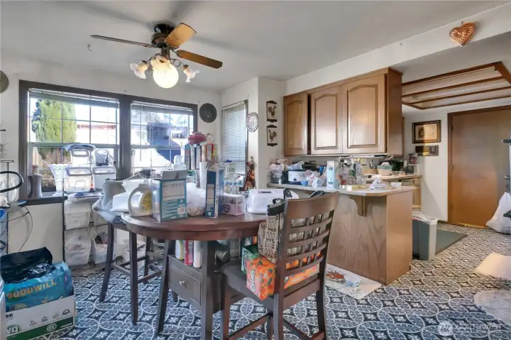 Located in a picturesque area of Maple Valley with beautiful territorial views, this Diamond in the rough sits on 5.75ac! The home was custom Built in 1986 with 4 bedrooms, 2 bathrooms, attached large garage. The main living room/dining room area features a fireplace with wood stove insert, high vaulted ceilings and custom stained glass window. There are beautiful SOLID WOOD doors and trim throughout. The home has lots of character to work with. There are 2 bedrooms on the main floor and 2 upstairs, 1 full bath each floor. There is a roomy kitchen with pantry and separate laundry area. Huge finished bonus room over the garage, currently used as bedroom. This home has plenty of space for everyone. There are several Outbuilding/Sheds on property. Lots of room for everyone to spread their wings! Being SOLD AS-IS, currently tenant occupied. Contact your broker for a tour!