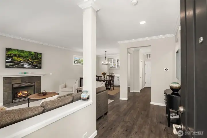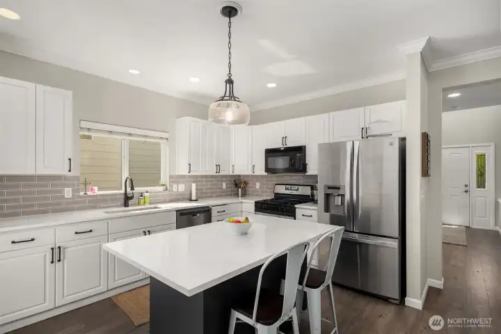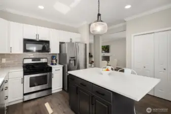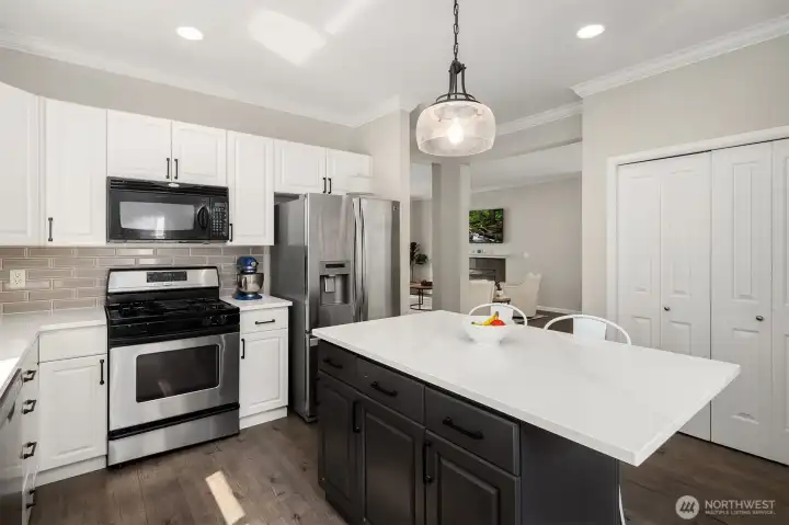 Located in the sought-after Crest View cul-de-sac of Snoqualmie Ridge, this beautifully upgraded DR Horton home offers flexible living space to fit a variety of lifestyles. Featuring 4 bedrooms (or 3 bedrooms plus a spacious bonus room), this home is ideal for work-from-home needs, guest space, or multi-generational living. The remodeled kitchen is designed for both everyday living and entertaining with stainless steel appliances, slab countertops, island seating, pantry storage, and updated flooring that flows seamlessly throughout the main level. Enjoy 9-foot ceilings, white millwork, designer paint, and the year-round comfort of air conditioning. Upstairs, you’ll find a generous bonus room or optional 4th bedroom, a convenient laundry area, and a relaxing primary suite complete with a 5-piece bath and walk-in closet. Plus two additional bedrooms. Enjoy easy access to scenic trails, parks, and the community amenities that make Snoqualmie Ridge one of the area's most desirable places to live.