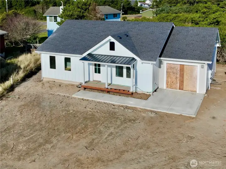 Charming New Cottage located a mere 4 parcels from a Beach Access Trail at Ocean Shores, Washington! Listen to the ocean from this 1,131 sf new model by Lotus Design & Construction featuring 2 bedrooms, 1.75 bathrooms, and a 1-car garage. Enter into the great room with vaulted ceilings, luxury vinyl plank flooring, and electric fireplace. Spacious kitchen with Quartz counters and plenty of prep and storage space. Dining w/door to deck. Primary ensuite complete with a walk-in closet, 3/4 bathroom and door to back deck. Full bathroom with tiled tub surround and sunny guest bedroom off the hallway. 1-car finished garage. Full size 6,432 sf parcel. Out of the Ocean Shores community club-buyer may opt in at any time and enjoy the Bayshore clubhouse and several club-owned parks/pools scattered about the city. Short distance to dining at Oyhut Bay, a bit further to a canal park with boat launch into 23 miles of fresh interconnecting lakes and canals winding about the peninsula. A few miles from shopping at town center, additional parks or our 18-hole golf course. 3 hours from both Seattle and Portland.