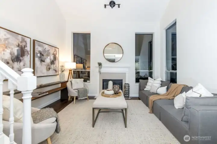 Beautifully renovated 1,416 sq ft two story townhome in the desirable Le Blanc community of Kent. Features vaulted ceilings, premium LVP flooring, recessed lighting, and a cozy gas fireplace. Open concept kitchen and living with a main floor powder room and access to a peaceful backyard area. Upstairs offers a loft, two bedrooms, and two full bathrooms. Enjoy a newer roof, an attached garage with storage, low HOA dues, and close proximity to shopping, schools, freeways, and transit.
