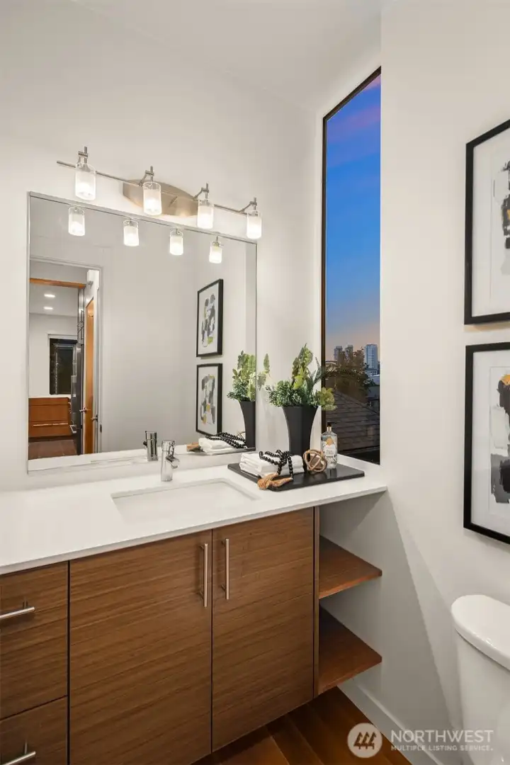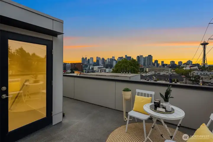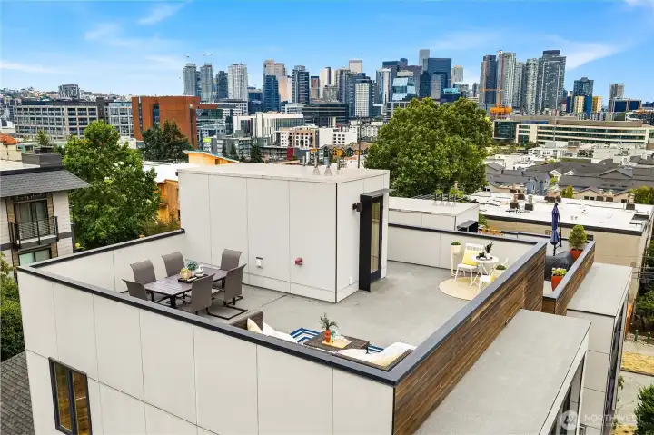 Light-filled and impeccably crafted, this south-slope Queen Anne home blends contemporary design with timeless livability. The chef’s kitchen features custom Mike Sheldon walnut cabinetry, a 36” Bertazzoni range, and a waterfall island, flowing seamlessly into airy living spaces with 9’ ceilings, rift-sawn oak floors, and a custom steel-and-oak fireplace. A luxe primary suite with spa shower and walk-in closet complements 2 bedrooms plus office. Entertain on the 780 sq ft rooftop deck with wet bar and sweeping Space Needle views. With A/C, radiant heat, abundant storage, attached garage + driveway parking, and a 92 Walk Score, both Upper and Lower Queen Anne are just steps away.