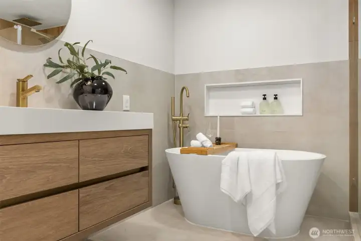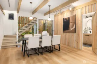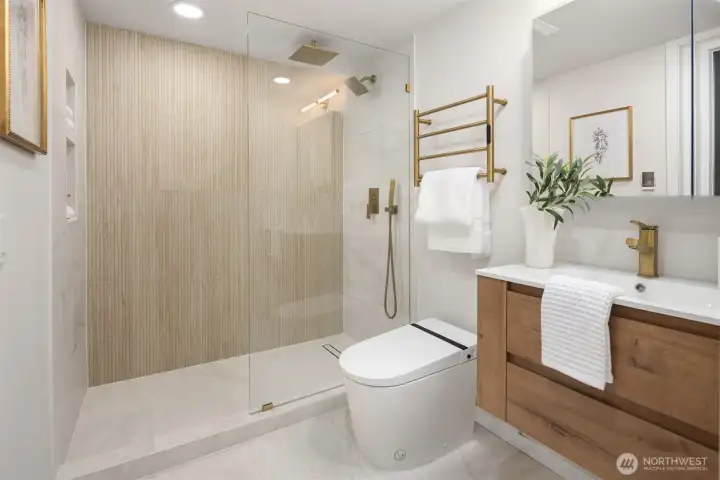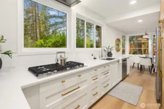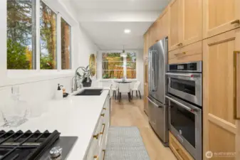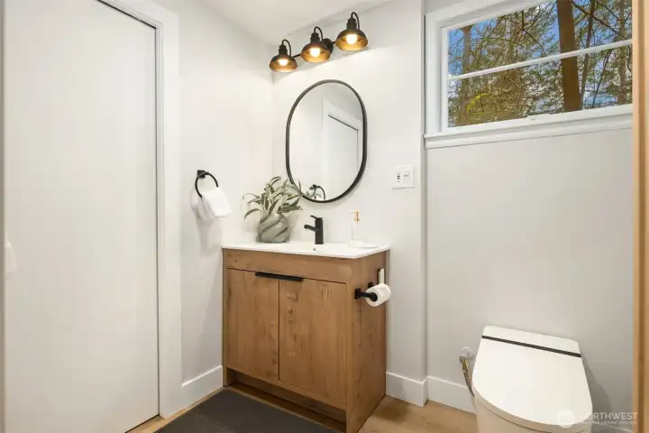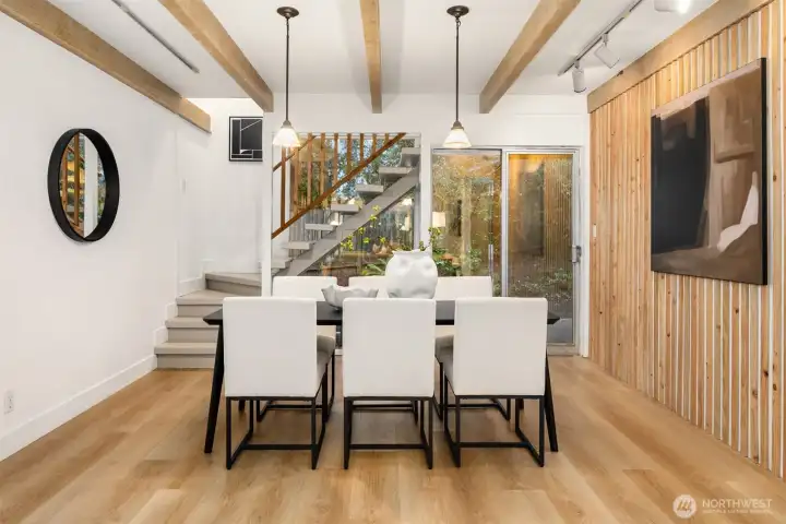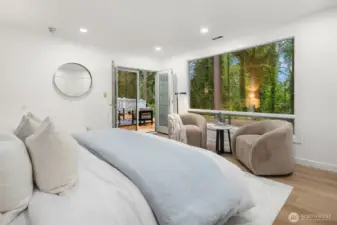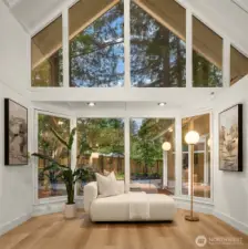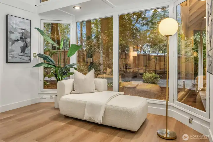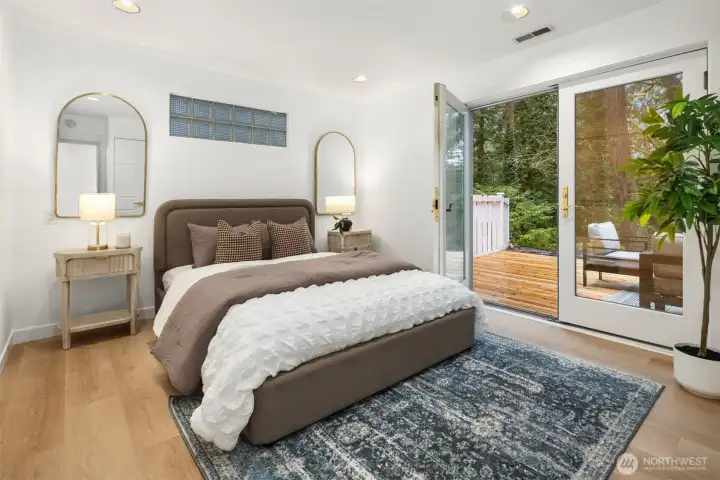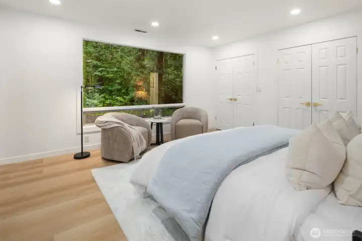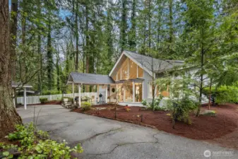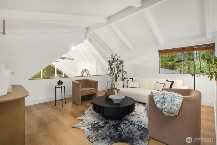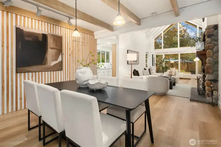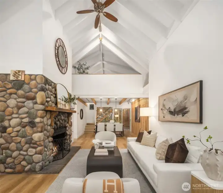 Beautifully remodeled, move-in-ready home set on a private, flat, and spacious lot that feels like your own retreat. This 1,970 sq ft Lake Forest Park home offers designer touches and thoughtful upgrades throughout, including a remodeled kitchen and bathrooms, new flooring, fresh interior paint, and EV charging. The vaulted great room features dramatic ceiling height, floor-to-ceiling windows, and a river rock gas fireplace that anchors the space. A brand-new deck overlooks the fully fenced backyard, offering a private outdoor space perfect for relaxing or entertaining. The upper-level loft provides flexible space for an office or bonus area, while the three bedrooms are located on the main level. Conveniently located near LFP Town Center, parks, and transit. Oversized lot offers potential for a future subdivision or DADU with access from the rear street.