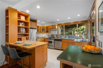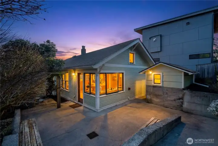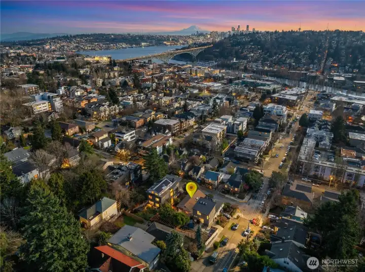 When a home has been loved, it is very obvious as it stands out from the crowd. 406 N Bowdoin Pl is no exception as it stands out in many ways! Sitting above the street and facing south provides privacy, and more, abundant natural light. Views of Mt. Rainier and New Years Eve’s Space Needle fireworks seen from the front bedroom never disappoint. Take a deep breath and enjoy not having to worry about the roof over your head, literally because it’s brand new (as is the hot water heater, carpet, vanity and flooring in the main bathroom, and paint throughout the entire home). The warmth of fir floors greets you at the enclosed porch, where you can sit down to take off your shoes, put on your slippers, and hang up your coat. I love this porch! Windows line the side of the home, looking over the large side and back yard, where a soak in the hot tub under the wisteria arbor beckons you nightly. The open, spacious, and highly functional kitchen has a door leading to the side and back patio, where garden parties flourish. There’s even a little shed for your garden tools! Two bedrooms on the main level make a lot of sense, and if you need some privacy, head downstairs where the 3rd bedroom and family room provide quiet spaces, perfect for a home office or a movie night. And don’t miss the oversized wine cellar! Located on one of Fremont’s best streets, you’ll be surprised to learn just how walk-able you are to all things Fremont. SO close, yet just far enough away to still be quiet.