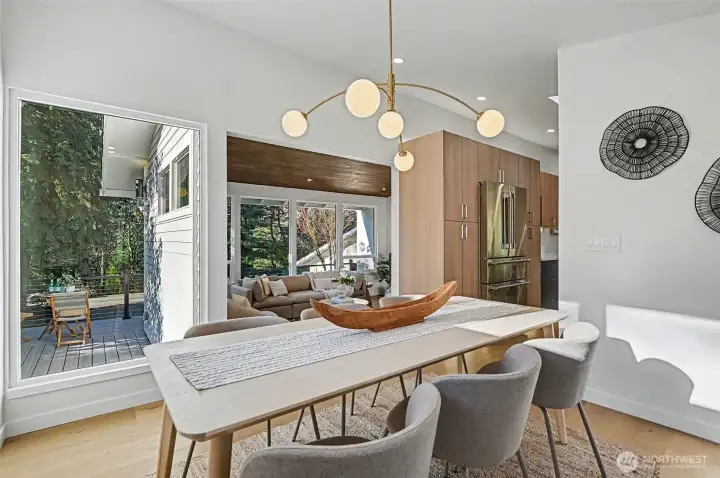 Prime neighborhood showcasing a timeless, modern Mid-Century home. Soaring cathedral ceilings and west-facing peekaboo lake views highlight the elegant living and dining spaces. The chef’s kitchen appliances, quartzite countertops and perfect for both everyday living and entertaining. Indoor-outdoor living with a private backyard deck & patio. Welcome your guest from the front deck. A dreamy primary suite with luxury bathroom, his and her closets, and private deck. Rare 4+ cars park driveway an attached two-car garage. Five bedrooms plus flexible bonus rooms offer endless options for a home office, studio, or exercise space. Just minutes to waterfront parks, scenic trails, shopping centers, and award-winning schools.