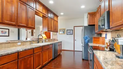 Welcome home to this beautifully maintained 2.48-acre property in one of Prosser’s most picturesque neighborhoods. This 1,882 sq. ft. home features 3 bedrooms plus a bonus room, an open-concept living area, and a formal dining space with Mt. Adams views on clear days. The kitchen boasts custom Alder cabinets with soft-close doors and full-extension drawers. Step onto the covered patio, perfect for outdoor living with hot tub hookups. The property includes an attached 2-car garage, a 24x36 heated shop with car lift and finished upstairs room, plus a second 24x30 shop with 200-amp service. RV pad, mature landscaping, organic garden space, and stunning sunsets complete this Prosser gem.
