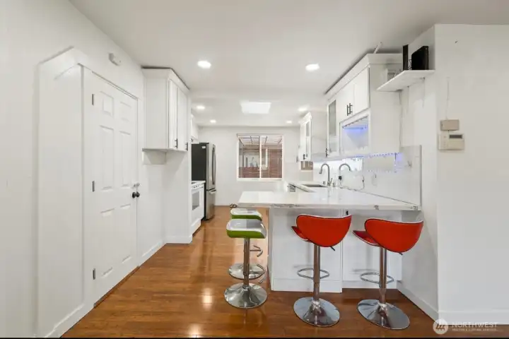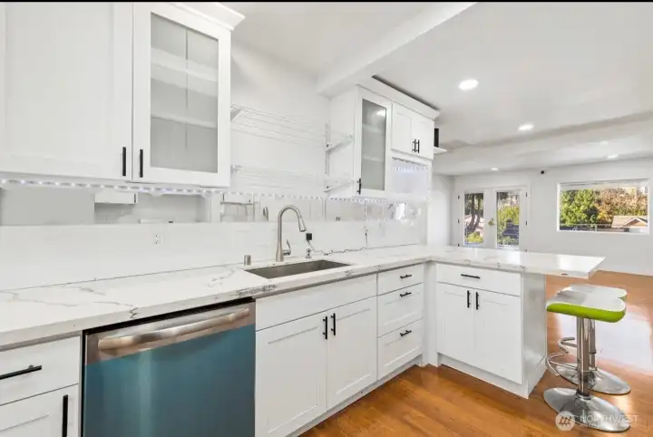 Fully remodeled and move-in ready! This stunning 1,400 sq ft 4-bedroom, 3-bath rambler delivers modern living at its best, featuring a designer kitchen with top-tier appliances and three beautifully updated bathrooms. Entertain effortlessly with a private wet bar and separate entry—ideal for guests, rental income, or multigenerational living. Step outside to a spacious 32’ x 16’ deck overlooking a beautifully landscaped yard. An expansive concrete driveway and upgraded finishes throughout complete the package. Conveniently located just two blocks from Cascade Middle School and Evergreen High School. Stylish, turnkey, and priced to sell—this is one you won’t want to miss!