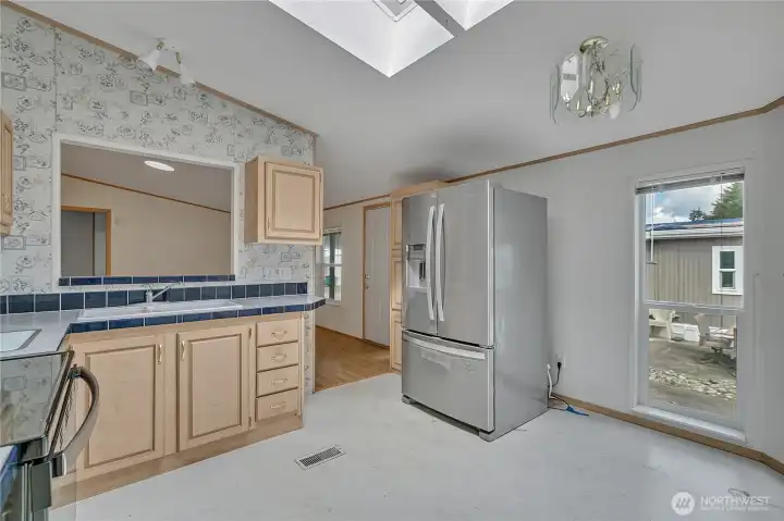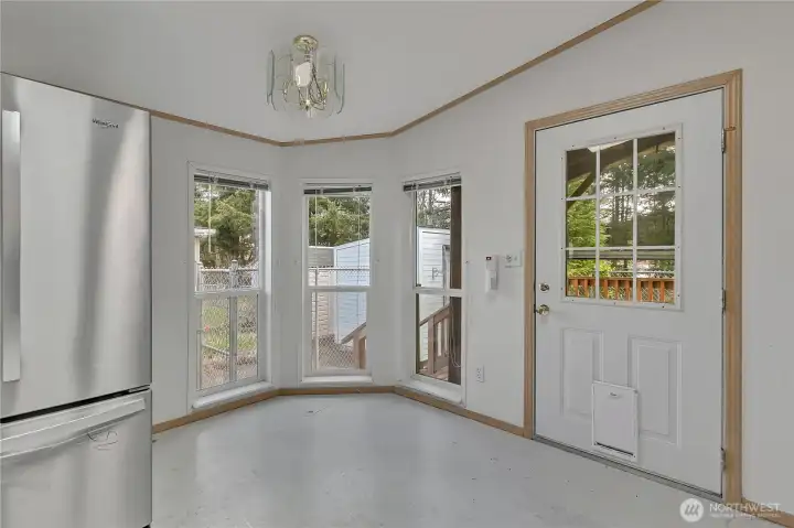 Welcome home to this bright, cozy 3 bedroom,2 bathroom home in the beautifully updated 55+ Friendly Ridge Park! With large closets and 1,120 sqft of thoughtfully designed living space, this home blends comfort and convenience. Enjoy natural light from skylights, a warm interior, and easy-maintenance flooring throughout. All appliances stay! Relax on the covered deck, let your small dog roam in the fenced yard, and take advantage of covered parking and a handy storage shed. Garden tub in the primary, full tub in guest bath, plus 3 exterior doors and a mudroom for added functionality. Live minutes from shopping, restaurants, and medical care—this is easy living at its best!