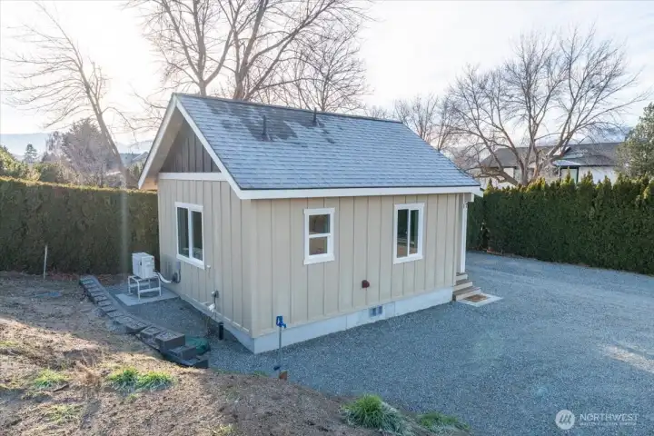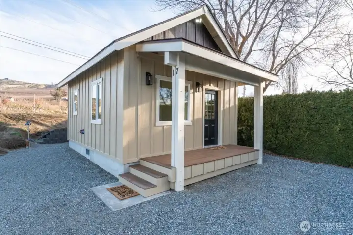Brand-new, high-quality 320 sq ft home offering efficient, stylish living with premium finishes. Features include a high-end Hyper Heat mini-split system, Douglas fir trim, and hookups for all appliances(stove installed). Easy access and entry on a spacious lot with variance reduced setbacks—providing exceptional flexibility to build a main residence, shop, garage, or combination. A future second story would capture beautiful Lake Chelan views. Property is fully served by water, irrigation, sewer, and power, and is RV-ready with dump, water spigot, power pole, and ample parking. No HOA or CCRs on the property. Move-in ready at an affordable price with outstanding future potential!