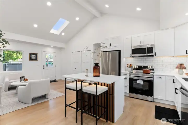 The perfect trifecta—Location,Parking, and Storage!This beautifully updated 3-bedroom,1-bath home is sure to impress. Featuring vaulted ceilings, brand new roof, fresh LVP flooring, and a stunning new kitchen with quartz countertops, custom cabinets, and undercabinet lighting. The open-concept living area creates a warm and inviting space ideal for entertaining. The Jack-and-Jill primary bedroom offers comfort and convenience. Outside, enjoy a spacious ¼-acre lot with a 12x16 shed and an additional 380 sq. ft. of versatile space—perfect for an office, gym, or extra storage. The garage includes 220 power, ideal for EV charging or workshop use.Excellent location near Costco,Wild Waves Theme Park, and quick freeway access for an easy commute!