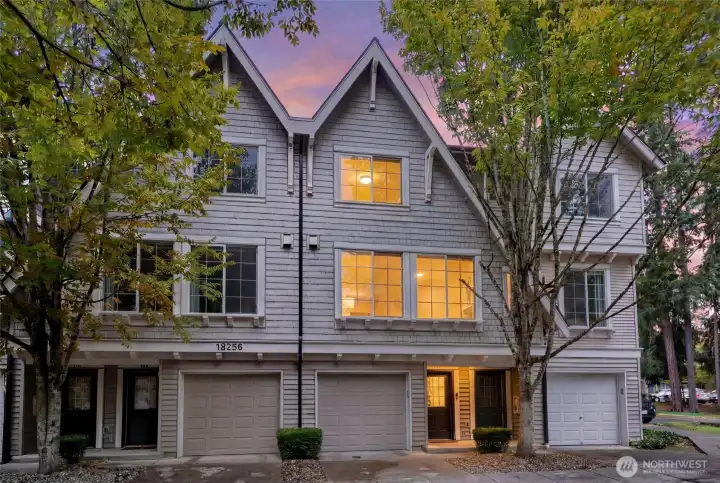 Spacious 3 bedroom & 2 bath townhouse features a light & bright floor plan! Main level boasts hardwoods throughout, large living room w/ extra high ceilings, gas fireplace, dining room, kitchen w/ stainless appliances & eating space. Slider off kitchen leads to quaint lovely yard. New carpet & paint throughout. Vaulted ceilings in bedrooms. Two car tandem garage. Plenty of extra storage. Minutes to highway, amenities, downtown Redmond & Microsoft. Strong HOA & no rental cap. Welcome home!