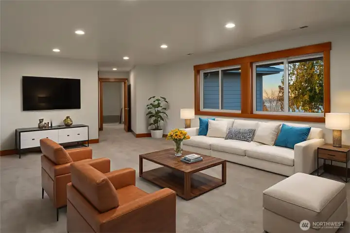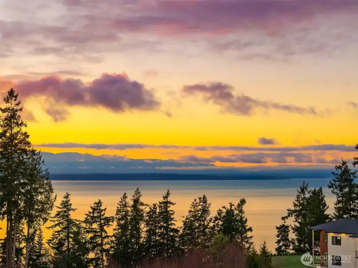 Nestled in Kelly Place at Picnic Point, this elegant half-acre estate offers sweeping, uninterrupted 150° views of Puget Sound, and the Olympic Mountains with stunning sunsets. Located at the end of a quiet street, the property features ample parking and a five-zone irrigation system. The thoughtfully designed home includes an elevator, radiant heated floors, A/C, tankless hot water with instant circulation, and a 50-year Presidential roof. A full-length composite deck with gas BBQ hookup enhances indoor-outdoor living. ADA-friendly features include wide doorways, curbless showers, and dual primary suites. Additional highlights include a gourmet kitchen, LED lighting,fiber-optic connectivity, 325-amp service,and natural gas backup generator