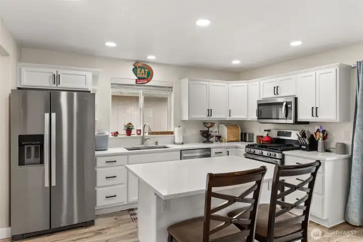 Light, bright, spacious, well maintained, updated, what else could you ask for? The formal living room features a charming bay window overlooking the front yard and flows into a spacious formal dining area perfect for hosting gatherings. The kitchen shines with stainless steel appliances, quartz countertops, new microwave, large island and huge pantry. Just off the kitchen the inviting family room with a gas fireplace overlooks the fully fenced backyard and patio with a gazebo. Upstairs you’ll find 4 bedrooms plus an additional full bath, including a primary suite with a walkin closet and private ensuite. A convenient half bath is located on the main floor just off the laundry room with a mud sink. New roof & AC in 2023 for an extra bonus!