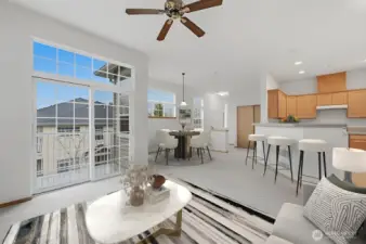 Discover this beautiful 2-bedroom, 2-bathroom condo spanning 1,210 sqft in the heart of Sammamish! This inviting top-floor residence is flooded w/ natural light & boasts sleek tile countertops and a convenient breakfast bar ideal for casual meals or hosting friends. The spacious primary bedroom offers an en-suite bath and a walk-in closet. Unwind in the open-concept living area with cozy fireplace, sip your morning coffee on the private deck, or explore the surrounding trails and nearby park with sports court. Enjoy fantastic amenities, including a clubhouse equipped with a fitness center, game room, full kitchen, and outdoor pool. Highly acclaimed Issaquah School District, convenient access to shopping, and dining. Move-in ready!