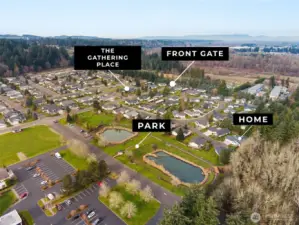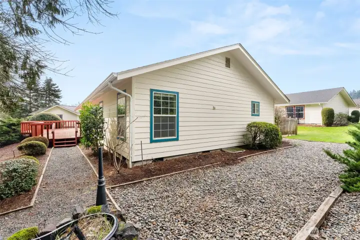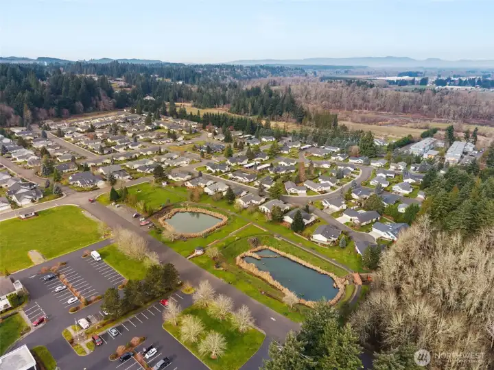 Nestled within Stillwaters yet beautifully secluded by a neighboring forest, this thoughtfully designed 1834sf residence provides privacy, comfort & flexibility, and features 2 spacious primary bedrooms with en-suite baths, plus a jetted walk-in tub! The kitchen's been updated with beautiful quartz counters, a custom tile backsplash, and new appliances. This great living space is highlighted by its new carpet, fresh paint, vaulted ceilings, and skylights that create a light, open feel flowing into the Living & Dining Rooms. Enjoy everyday ease with a large laundry room (that could be converted to a bedroom), a dedicated office conveniently located off the oversized two-car garage, & ample storage. Outdoor living shines with a huge deck and private patio—ideal for relaxing or entertaining, while immersed in the calm of nature. Located in Stillwaters Estates, Lewis County's premier 55+ gated & professionally managed community, where all the homes are designed for quality living, secure covenants that include many amenities, & a clubhouse for activities. All homes include accessibility features. SWE Maint Fees $493-$572/mo
