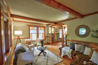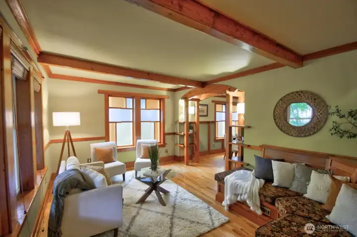 One of a kind custom home in the heart of Olympia! Beautifully transformed 1909 home, fully renovated over six years using reclaimed, refinished wood. Custom details throughout, such as stained glass and built ins. Enjoy a spacious kitchen with a large island, slate countertops and stainless steel appliances. Soak up the morning sun on the deck off the primary suite overlooking a beautiful backyard adorned with mature trees. Conveniently located and minutes to I-5 and JBLM. Olympia School District. Walking distance to restaurants, shops, entertainment, parks, marina, farmer's market. Alley access allows for the construction of a duplex or ADU. Maple trees and other native plants & trees help create a peaceful oasis to enjoy. New Roof!