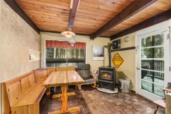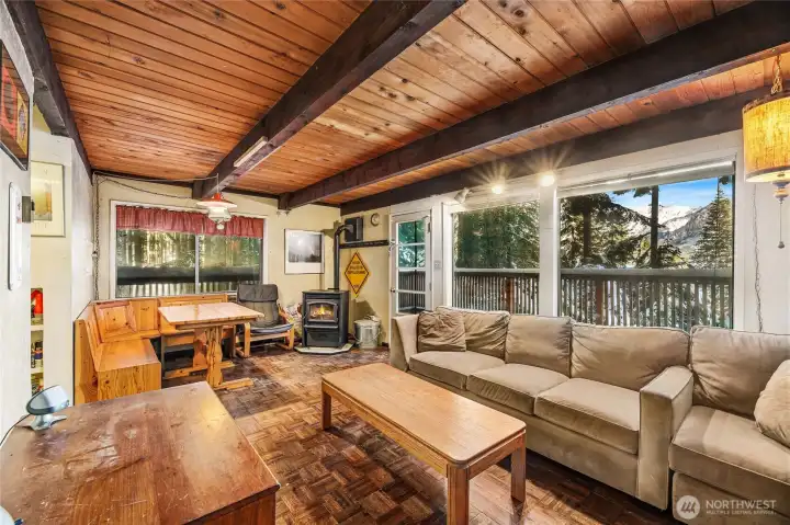 Opportunity knocks!! Here's the mountain fixer you have been waiting for. Views of the Cascade mountains are framed in the trees. Tucked down below Snoqualmie Dr you'll find serenity sitting by the pellet stove watching the snowfall after a long day on the slopes. Home needs TLC and then some, and the sweat equity will pay off in the long run. Multiple decks, cute kitchen, built in dining area, seasonal creek runs through the lot next door. It's a perfect winter to get some work done and be ready for more seasons to come.