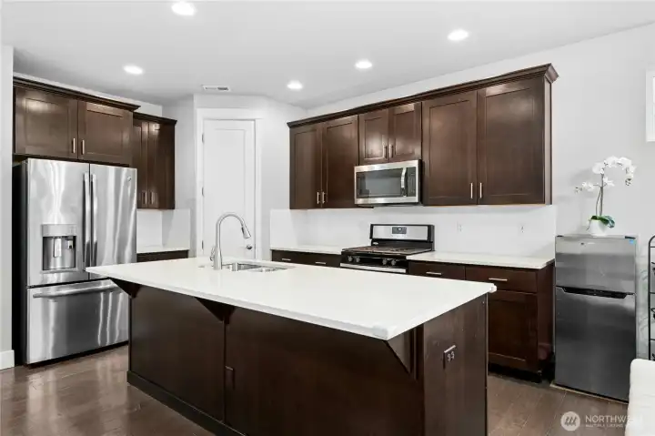 This well-maintained 2,703 sq ft home sits on a quiet cul-de-sac in the sought-after Allen Creek Park neighborhood of Marysville. Built in 2016, it features 4 bedrooms and 2.75 baths, combining modern style with functional living. Highlights include a main-floor bedroom or office, a versatile bonus loft, hardwood floors, vaulted ceilings, white millwork, and a cozy gas fireplace. The kitchen boasts stainless steel appliances, a large quartz island, and a walk-in pantry. Upstairs, the primary suite offers vaulted ceilings and dual walk-in closets. Additional features include a fully fenced backyard with patio, tankless water heater, and a 2-car garage. Conveniently located near parks, schools, shopping, and freeways.