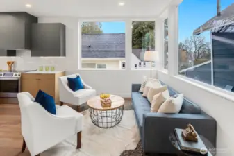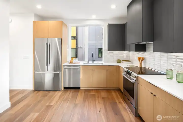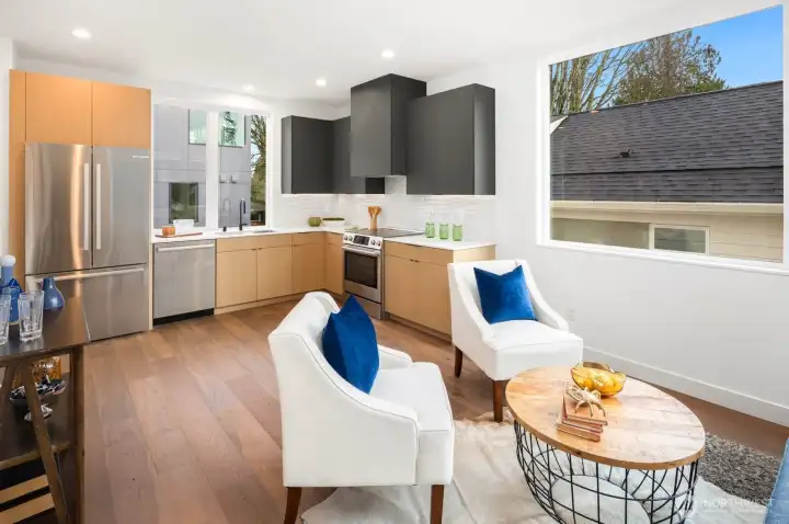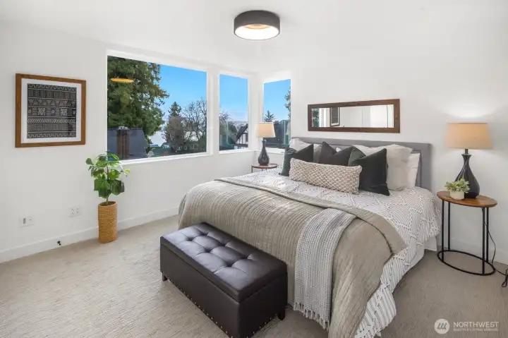 Enjoy modern living in this boutique 3-home community in the heart of Madrona—one of Seattle’s most beloved, walkable neighborhoods, known for its cafés, local shops, parks, and easy access to the lake. 806B is a thoughtfully designed 2-bedroom ADU with bright, efficient living spaces and a well-appointed kitchen. Entry level has an ensuite bedroom and access to a fully fenced outdoor space. Your lofty primary suite tops off the design. Take in sweeping views of the lake, Bellevue city skyline, and the Cascades from the rooftop deck, perfect for morning coffee or sunset gatherings. A dedicated off-street parking pad adds everyday ease. Elevated details include radiant-heated bathroom flooring and recessed mini-splits.