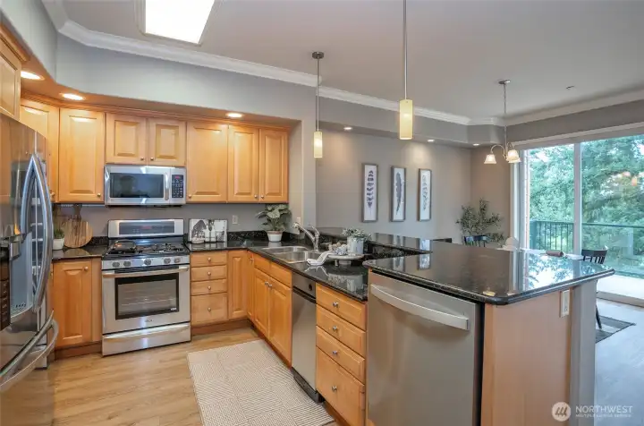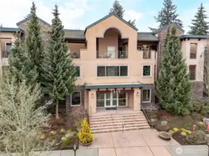 Light & bright top-floor end unit in Tacoma's Allenmore East Condominiums. Private balcony overlooking Allenmore Golf Course. ZERO stairs from secure common parking garage to the unit. Welcoming lobby entrance & common exercise room. Secure building with a well-maintained, self-managed HOA. Inviting 2 bedroom +den/office, 2 bathroom unit. Warm, cozy radiant heated floors throughout and gas fireplace in the living room. Well-appointed kitchen with upgraded appliances and granite countertops. Spacious primary suite with walk-in closet. Large laundry room with extra cabinetry and a handy utility sink. Includes two parking spaces in the common garage plus a private storage unit. Clean, comfortable, and easy living—come see!