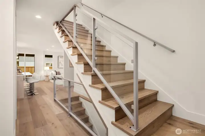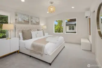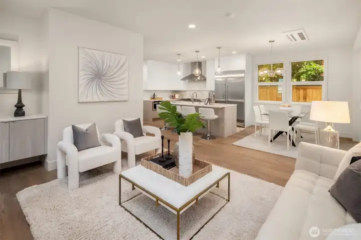 New construction with a coastal flair in coveted West of Market. Light-filled main level features open living, dining, and kitchen with gas fireplace, built-ins, and sliders to a covered patio and fenced yard—perfect for indoor/outdoor living. Kitchen shines with Monogram appliances and custom cabinetry, with drybar in the dining room. Upstairs offers a serene primary suite, two additional bedrooms, full bath, and oversize laundry with extensive storage. Fully finished basement includes a spacious rec room for entertaining, dry bar with beverage fridge, plus guest bed and bath. Enjoy proximity to Lake Washington, Waverly Beach Park, and downtown Kirkland. EV-ready garage completes this home!
