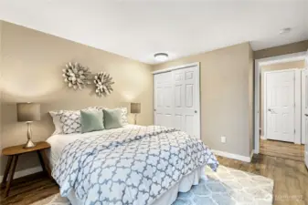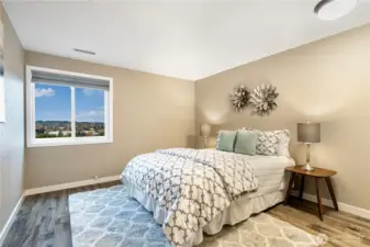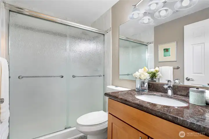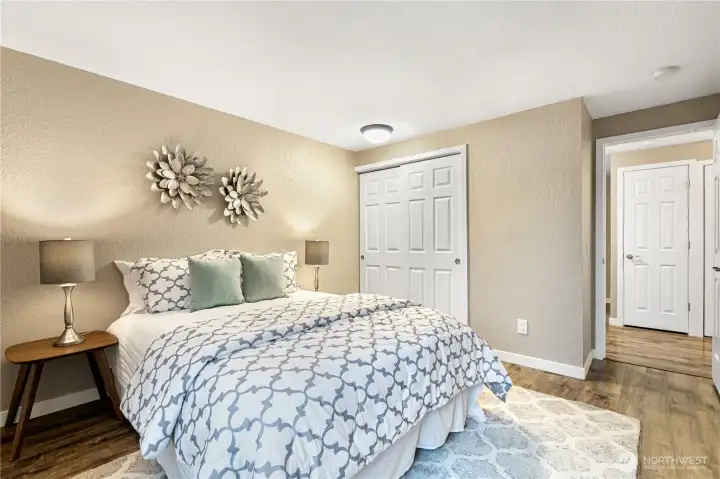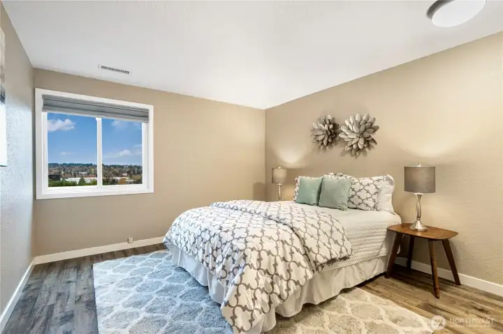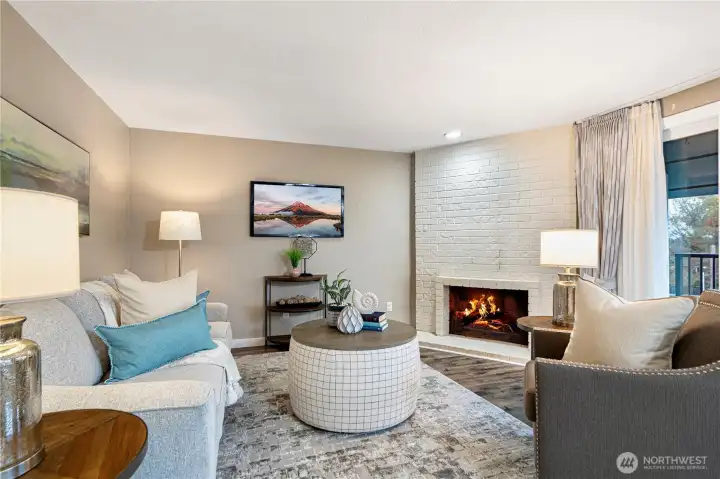 This beautifully maintained top-floor end unit offers 2 bedrooms and 2 baths with partial views of Lake Washington. Enjoy low-maintenance luxury vinyl plank flooring throughout, a private balcony, and a separate storage closet for added convenience.The inviting living room features a striking floor-to-ceiling brick fireplace, while the kitchen is equipped with granite countertops and stainless steel appliances. The primary bedroom includes a private ¾ bath.Additional highlights include an in-unit washer and dryer, ample guest parking, and an unbeatable commuter location—just minutes from the freeway, Factoria, and highly rated Bellevue schools.