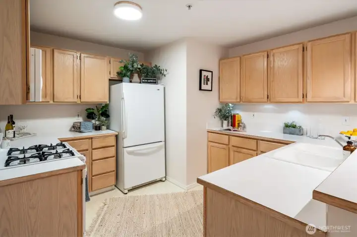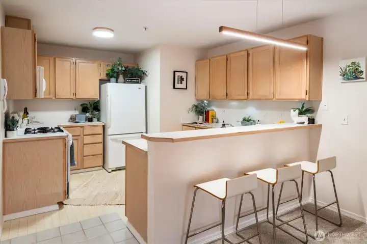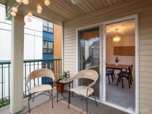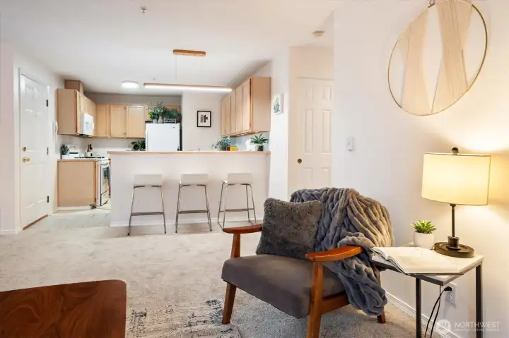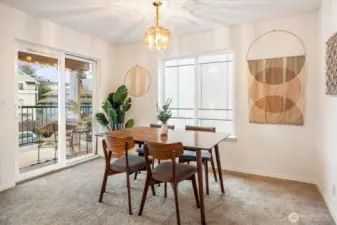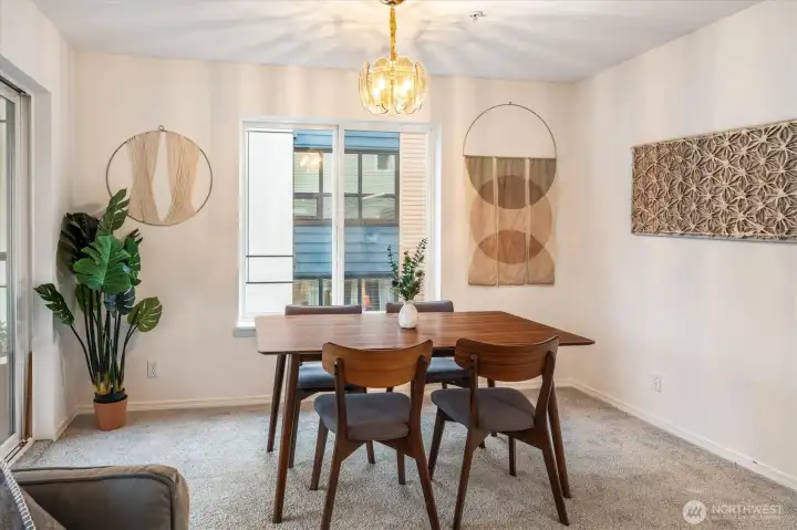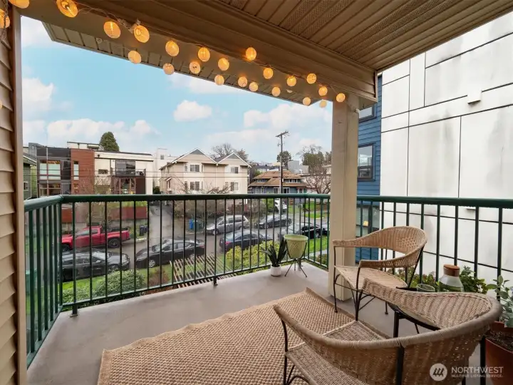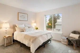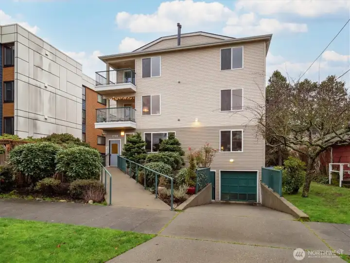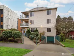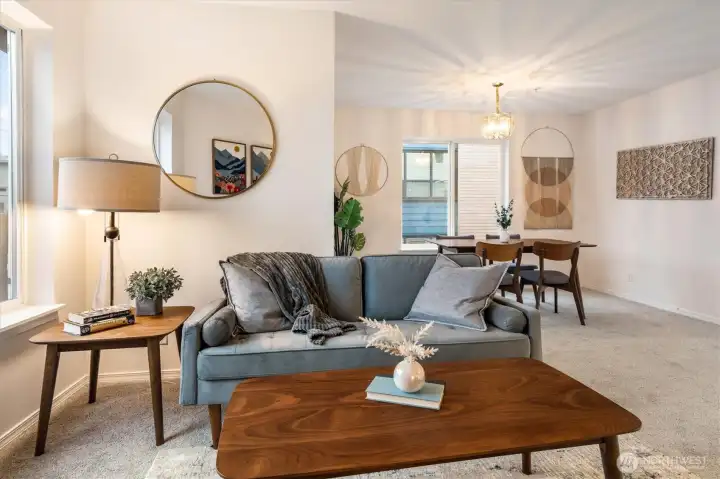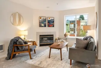 Fantastic opportunity to own in Ballard! This spacious, well-designed condo features an open kitchen with bar seating, living room with gas fireplace and dedicated dining area that flows seamlessly to private patio which is covered for year-round enjoyment. 2 beds (including primary), both with large walk-in closets. Convenient in-unit washer/dryer and two covered, secure parking spaces plus a storage unit. Community garden with raised beds, and BBQ/patio area. Just blocks from historic downtown Ballard’s shops, restaurants, and more, adjacent to a Seattle “Healthy Street,” with unit views of sunset skies - the location can’t be beat! One owner, fresh paint, new carpet, low HOA, pet friendly (upon approval), rental cap not met.