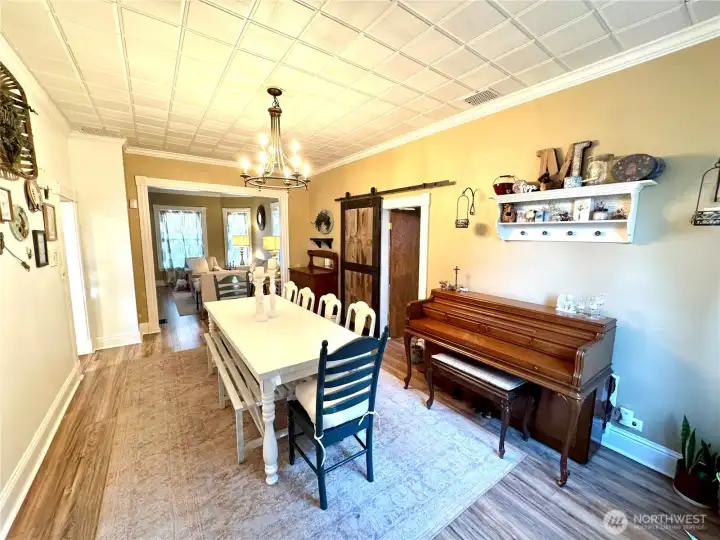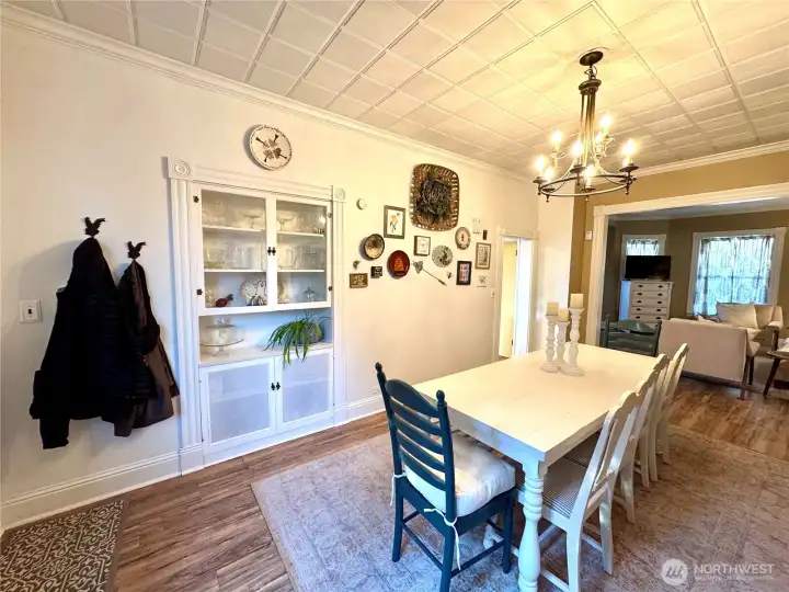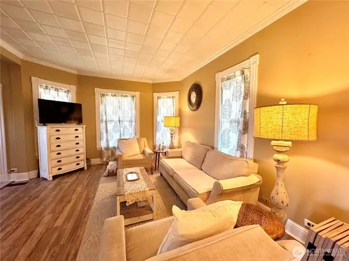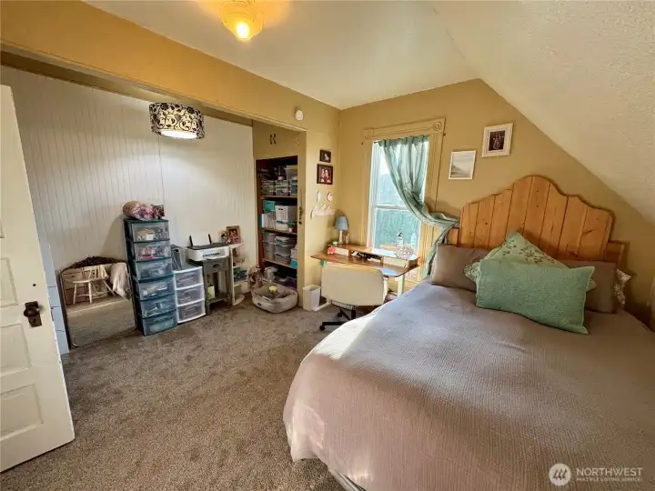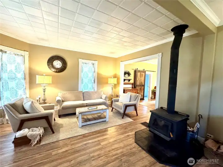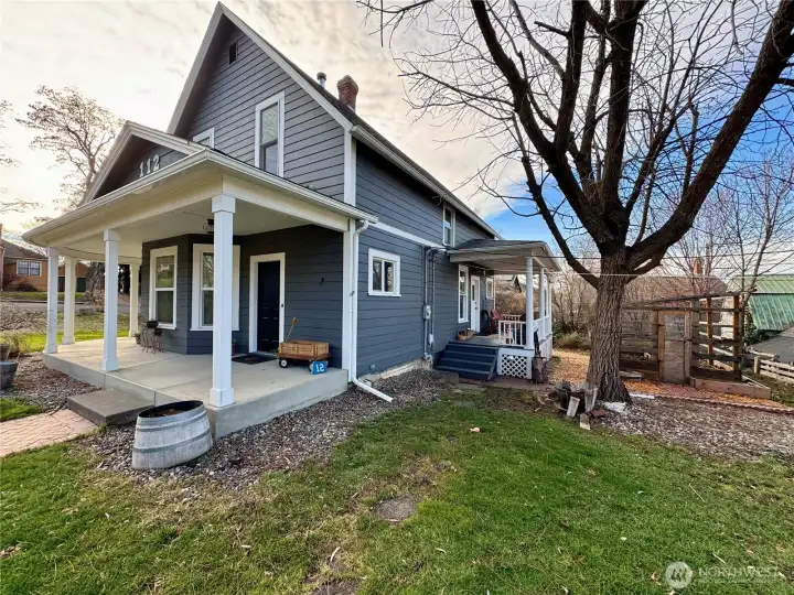 Charismatic 1903 Victorian offering timeless character paired with thoughtful modern updates, set on an 11,700 sq ft corner lot. A covered, concrete front porch enhances the home’s classic curb appeal and provides a welcoming place to relax. The main floor bedroom offers a private exterior entrance and en-suite bathroom, making it ideal for guest accommodations or flexible living arrangements. Enjoy a cozy living room with a wood stove to keep you warm. Recent owner improvements include a heat pump for year-round comfort. Exterior enhancements include a wood shed and covered garden space. This generously sized lot provides ample room for outdoor enjoyment and future potential, including space to add an additional garage or shop.
